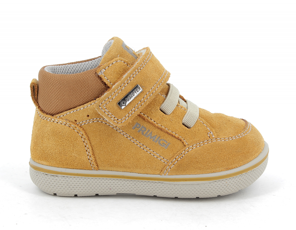 Vyššie, kožené, nepremokavé topánky s membránou Gore-tex od talianskej značky Primigi. Sedia na normálne široké nôžky. Gore-tex membrána ochráni topánočky bez dodatočnej impregnácie pred dažďom, snehom a vlhkosťou. Tento druh topánok je možné impregnovať sprejom na membrány pre lepšiu údržbu a jednoduché čistenie. Vnútro je potiahnuté príjemnou textíliou. Sú maximálne pohodlné vďaka technológii Primigi Shock Absorber- podrážka v oblasti päty podporuje odpruženie a preto skvele tlmí otrasy pri chôdzi. Vo vnútri sa nachádza kožená, vyberateľná stielka. Topánočky majú v oblasti členku zapínanie na suchý zips, prispôsobia sa tak každej nôžke a upevnia ju v topánke. Elastická šnurovačka v prednej časti tenisiek je okrasná, netreba ju viazať.