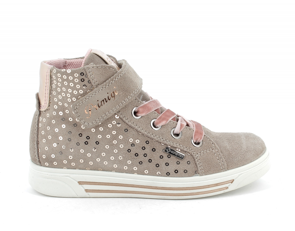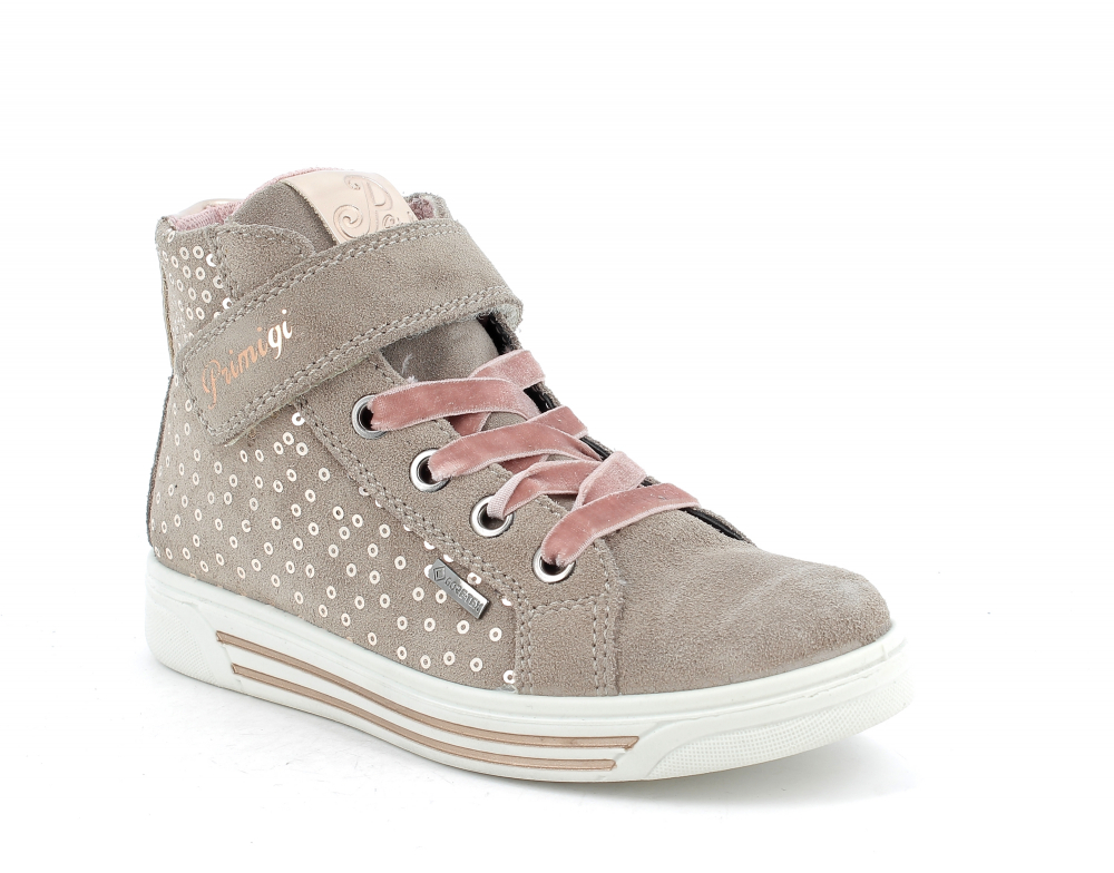 Štýlové, vysoké tenisky od talianskej značky Primigi s nepremokavou Gore-tex membránou, ktorá ochráni topánočky bez dodatočnej impregnácie pred dažďom a vlhkosťou. Tenisky sedia na normálne široké nôžky. Sú maximálne pohodlné a to vďaka technológii Primigi Shock Absorber- podrážka v oblasti päty podporuje odpruženie a preto skvele tlmí otrasy pri chôdzi. Topánočky majú v oblasti členku zapínanie na suchý zips, prispôsobia sa tak každej nôžke a upevnia ju v topánke. Elastická šnurovačka v prednej časti tenisiek je okrasná, netreba ju viazať. Stielka je vyberateľná. Topánky sú ľahké, nezaťažujú nohy.