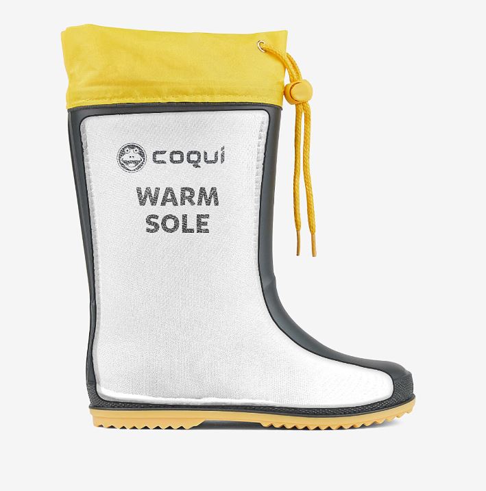 Mäkké, pohodlné, ľahučké gumáčiky od značky Coqui v krásnych farebných prevedeniach. Gumáčiky sú vyrobené z pružnej zmesi kaučuku. Vo vnútri je vyberateľná textilná stielka. Vrchná časť gumákov je zakončená nepremokavým šušťákovým lemom a sťahovacou šnúrkou, vďaka ktorej sa dajú pekne utiahnuť a prispôsobiť nôžke. Gumená podrážka je protišmyková. Vnútro gumákov je zatelpené flísovou vrstvou.