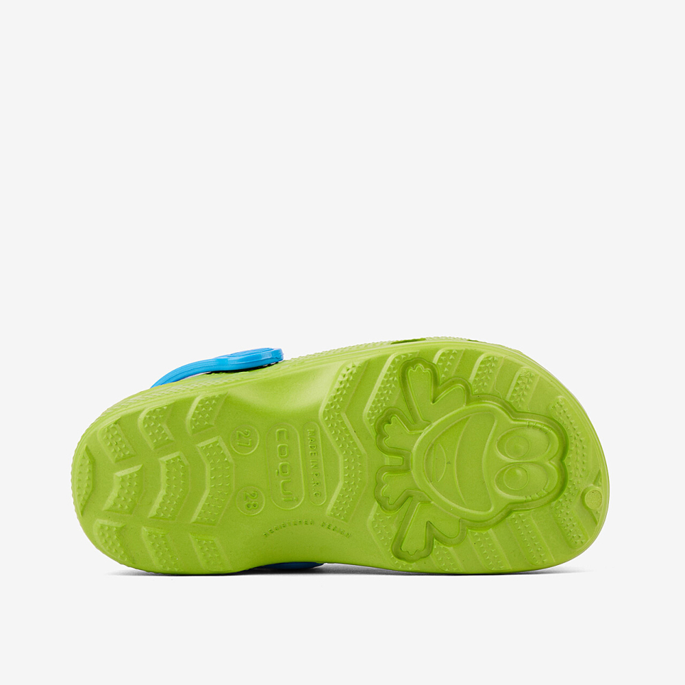 Ľahučké gumené šľapky značky Coqui ideálne na letné obdobie k moru či k bazénu. Podrážka z protišmykového materiálu zabraňuje pošmyknutiu. Sú vhodné na normálne široké aj širšie nohy. Prsty sú prekryté, chránené pred nárazmi. Päta je otvorená, upevňuje ju gumený pásik. Antibakteriálny povrch CoquiAir znižuje riziko prenosu baktérií a je zdravotne nezávadný. Sandále sú ľahko umývateľné vodou, ich údržba je teda takmer bezpracná. Nesušte v bezprostrednej blízkosti tepelných zdrojov.