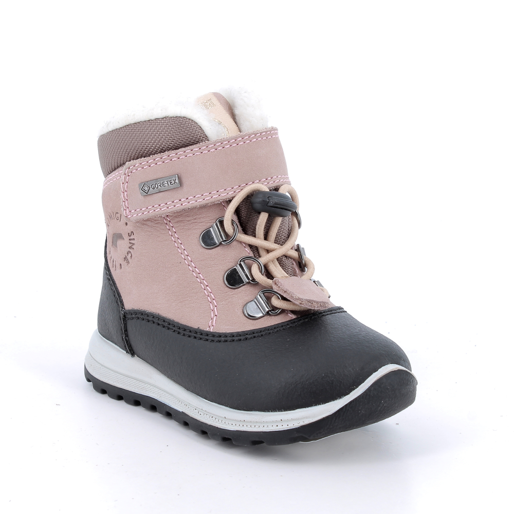 Nepremokavé čižmy od talianskej značky Primigi v štýlovom prevedení. Gore-tex membrána ochráni topánočky bez dodatočnej impregnácie pred dažďom, snehom a vlhkosťou. Sedia na normálne široké nôžky. Vnútro je potiahnuté príjemnou kožušinou. Sú maximálne pohodlné vďaka technológii Primigi Shock Absorber- podrážka v oblasti päty podporuje odpruženie a preto skvele tlmí otrasy pri chôdzi. Zapínajú sa na suchý zips v oblasti členku. Elastická šnurovačka na prednej strane slúži na dotiahnutie topánočiek k členkom. Majú vyberateľnú stielku s jemne tvarovanou klenbou a pevnú pätu.