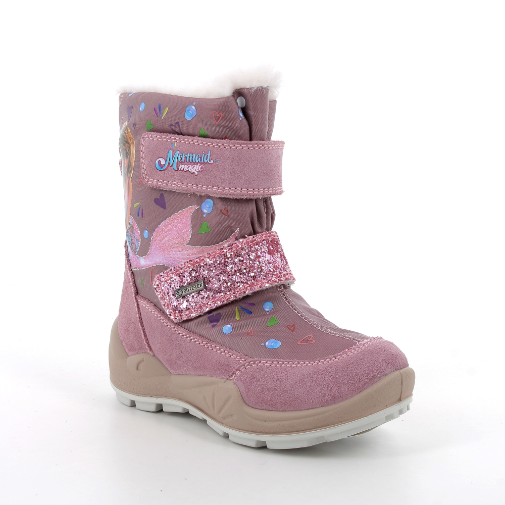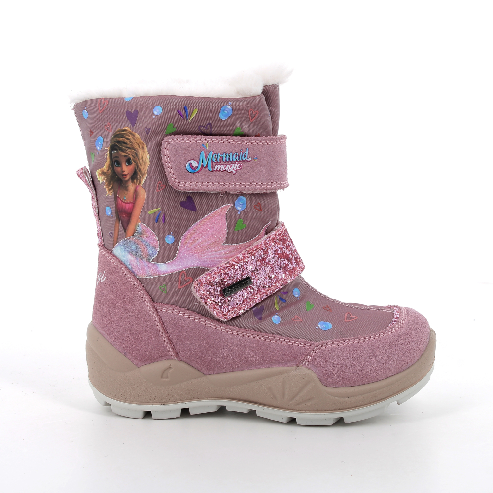 Vysoké, nepremokavé čižmy od talianskej značky Primigi v štýlovom dievčenskom prevedení v kolaborácii s animovaným seriálom Mermaid magic. Gore-tex membrána ochráni topánočky bez dodatočnej impregnácie pred dažďom, snehom a vlhkosťou. Sedia na normálne široké nôžky. Vnútro je potiahnuté príjemnou kožušinou. Sú maximálne pohodlné vďaka technológii Primigi Shock Absorber- podrážka v oblasti päty podporuje odpruženie a preto skvele tlmí otrasy pri chôdzi. Zapínajú sa na suchý zips vďaka čomu sa prispôsobia i užším členkom. Vložka je zateplená kožušinou a zo spodnej strany je potiahnutá hliníkovou fóliou, ktorá chráni pred chladom. Tento druh topánok je možné impregnovať sprejom na membrány pre lepšiu údržbu a jednoduché čistenie.
