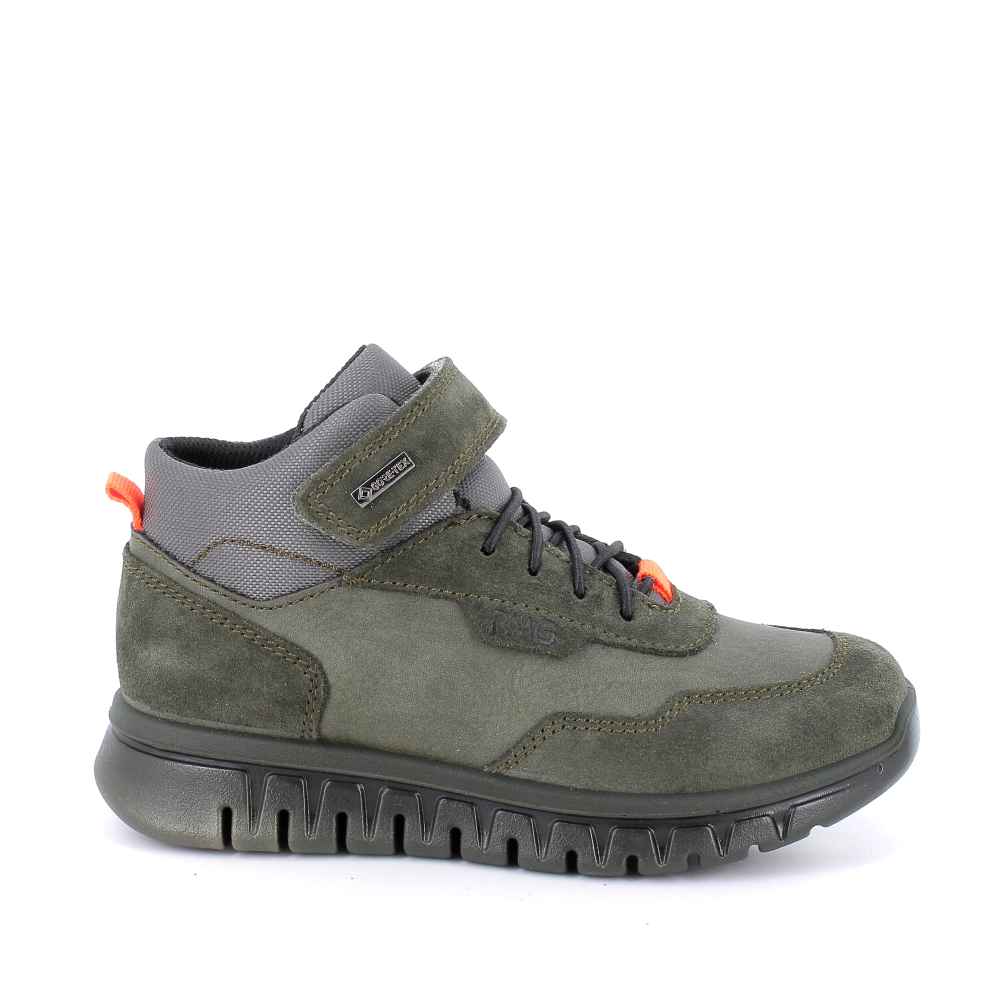 Vyššie, nepremokavé topánky s membránou Gore-tex od talianskej značky Primigi. Sedia na normálne široké nôžky. Gore-tex membrána ochráni topánočky bez dodatočnej impregnácie pred dažďom, snehom a vlhkosťou. Tento druh topánok je možné impregnovať iba sprejom na membrány pre lepšiu údržbu a jednoduché čistenie. Vnútro je potiahnuté príjemnou textíliou. Vo vnútri sa nachádza textilná, tvarovaná, vyberateľná stielka. Topánočky majú v oblasti členku zapínanie na suchý zips, prispôsobia sa tak každej nôžke a upevnia ju v topánke. Taktiež majú topánky aj spevnenú pätu. Elastická šnurovačka v prednej časti tenisiek je okrasná, netreba ju viazať. Veľmi praktická je pogumovaná špička a päta, ktorá chráni topánočky pred okopaním.