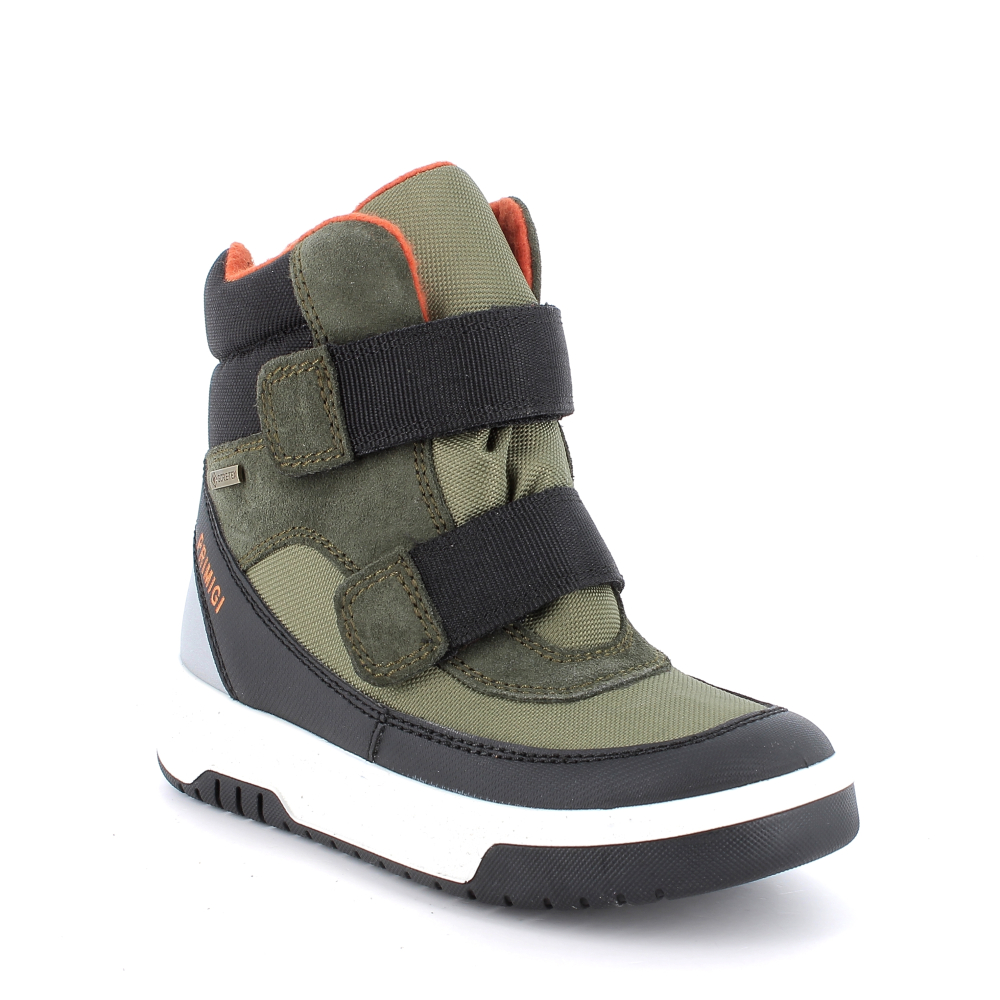 Vyššie, nepremokavé čižmy od talianskej značky Primigi. Gore-tex membrána ochráni topánočky bez dodatočnej impregnácie pred dažďom, snehom a vlhkosťou. Tento druh topánok je možné impregnovať sprejom na membrány pre lepšiu údržbu a jednoduché čistenie. Sedia na normálne široké nôžky. Vnútro je potiahnuté príjemnou, hrejivou kožušinou. Zapínajú sa suchým zipsom, vďaka ktorému sa prispôsobia i užším členkom. Sú maximálne pohodlné vďaka technológii Primigi Shock Absorber- podrážka v oblasti päty podporuje odpruženie a preto skvele tlmí otrasy pri chôdzi. Topánky majú spevnenú pätovú oblasť. Stielka je vyberateľná s jemne tvarovanou klenbou.