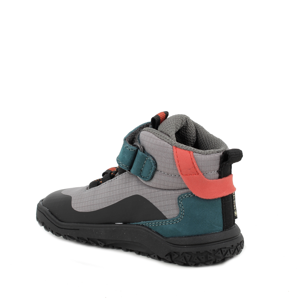 Štýlové a funčkné barefoot topánky talianskej značky Primigi sú veľmi ľahké a maximálne pohodlné. Vďaka zaoblenej špici poskytujú dostatočný priestor pre prsty. Sedia na normálne široké aj užšie nôžky a na normálne vysoký priehlavok. Topánočky sa zapínajú na suchý zips, ktorý upevňuje členok. Elastická šnúrovačka v prednej časti je okrasná, netreba ju viazať. Majú tenkú a flexibilnú podrážku, ktorá sa ohýba pozdĺžne aj priečne. Podrážka je s nulovým dropom (medzi pätou a špičkou nie je výškovo žiaden rozdiel, podrážka je teda úplne plochá a chodidlo je rovnako vysoko od zeme v päte aj špičke). Päta je mierne spevnená, stielka v topánkach je rovná, bez podpory klenby a tiež je vyberateľná. Životnosť topánok predlžuje pogumovaná úprava po bokoch a na špici. Na boku majú umiestnený reflexý prvok pre bezpečnosť. Topánky majú na sebe Gore-tex membránu, ktorá ochráni topánočky bez dodatočnej impregnácie pred dažďom a vlhkosťou. Podrážka Vibram je určená najmä do terénu, lesy, turistiku alebo iné outdoorové aktivity. Táto podrážka skvele prilne ku každému povrchu.