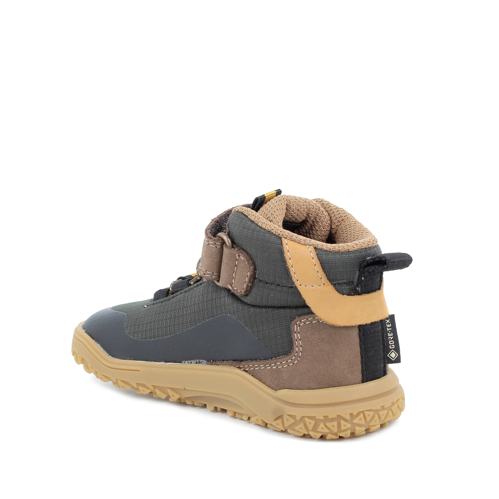 Štýlové a funčkné barefoot topánky talianskej značky Primigi sú veľmi ľahké a maximálne pohodlné. Vďaka zaoblenej špici poskytujú dostatočný priestor pre prsty. Sedia na normálne široké aj užšie nôžky a na normálne vysoký priehlavok. Topánočky sa zapínajú na suchý zips, ktorý upevňuje členok. Elastická šnúrovačka v prednej časti je okrasná, netreba ju viazať. Majú tenkú a flexibilnú podrážku, ktorá sa ohýba pozdĺžne aj priečne. Podrážka je s nulovým dropom (medzi pätou a špičkou nie je výškovo žiaden rozdiel, podrážka je teda úplne plochá a chodidlo je rovnako vysoko od zeme v päte aj špičke). Päta je mierne spevnená, stielka v topánkach je rovná, bez podpory klenby a tiež je vyberateľná. Životnosť topánok predlžuje pogumovaná úprava po bokoch a na špici. Na boku majú umiestnený reflexý prvok pre bezpečnosť. Topánky majú na sebe Gore-tex membránu, ktorá ochráni topánočky bez dodatočnej impregnácie pred dažďom a vlhkosťou. Podrážka Vibram je určená najmä do terénu, lesy, turistiku alebo iné outdoorové aktivity. Táto podrážka skvele prilne ku každému povrchu.