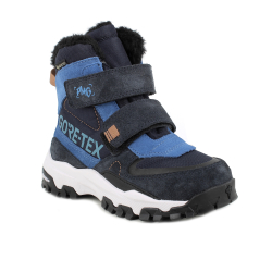 Nepremokavé čižmy od talianskej značky Primigi v štýlovom chlapčenskom prevedení. Gore-tex membrána ochráni topánočky bez dodatočnej impregnácie pred dažďom, snehom a vlhkosťou. Sedia na normálne široké nôžky. Vnútro je potiahnuté príjemnou kožušinou. Podrážka je tiež vyrobená z prémiového materiálu v spolupráci s francúzskou značkou Michelin, vďaka čomu sú topánočky priľnavejšie k zemi a klzkým povrchom. Nohu v topánkach upevňuje suchý zips, dajú sa dobre utiahnuť aj na užšie členky. Stielka je vyberateľná a má jemne tvarovanú klenbu. Topánky majú pevnú pätu. Tento druh topánok je možné impregnovať sprejom na membrány pre lepšiu údržbu a jednoduchšie čistenie.
