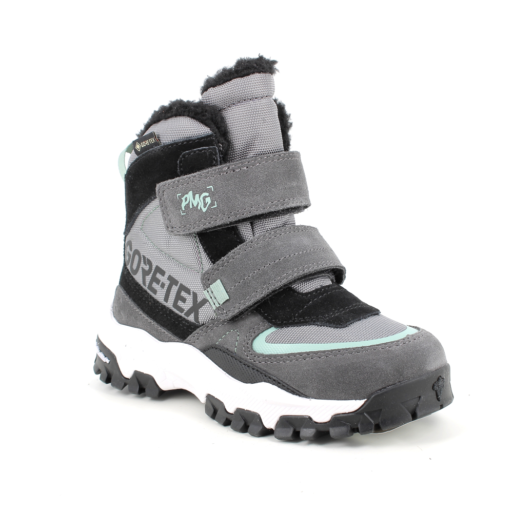 Nepremokavé čižmy od talianskej značky Primigi v štýlovom chlapčenskom prevedení. Gore-tex membrána ochráni topánočky bez dodatočnej impregnácie pred dažďom, snehom a vlhkosťou. Sedia na normálne široké nôžky. Vnútro je potiahnuté príjemnou kožušinou. Podrážka je tiež vyrobená z prémiového materiálu v spolupráci s francúzskou značkou Michelin, vďaka čomu sú topánočky priľnavejšie k zemi a klzkým povrchom. Nohu v topánkach upevňuje suchý zips, dajú sa dobre utiahnuť aj na užšie členky. Stielka je vyberateľná a má jemne tvarovanú klenbu. Topánky majú pevnú pätu. Tento druh topánok je možné impregnovať sprejom na membrány pre lepšiu údržbu a jednoduchšie čistenie.