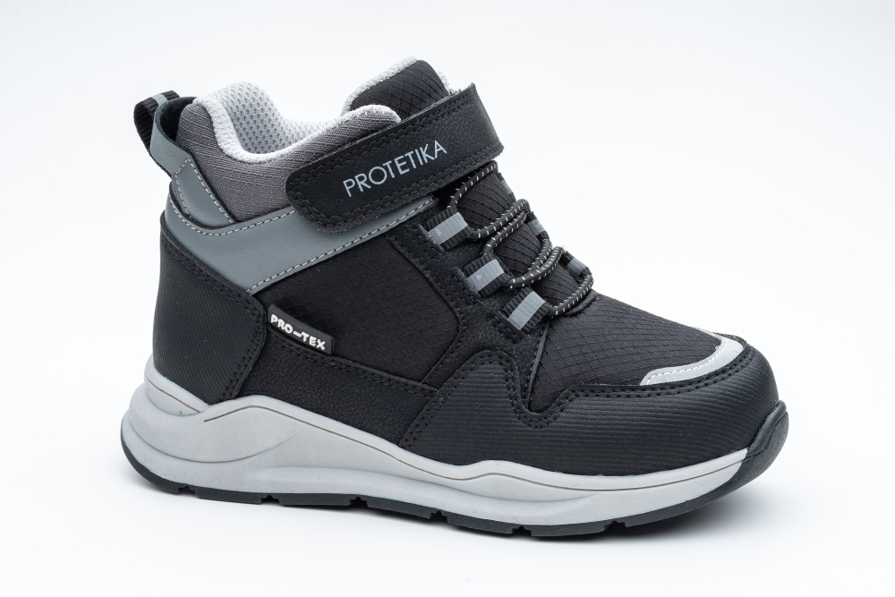 Vyššie celokožené tenisky od značky Protetika s nepremokavou Pro-tex membránou, ktorá ochráni topánočky bez dodatočnej impregnácie pred dažďom a vlhkosťou. Sedia na normálne široké, aj širšie nôžky a obujú ich aj deti s vyšším priehlavkom. Topánočky sú pevné, fixujú členok a majú tiež spevnenú pätu. Nachádza sa v nich kožená, vyberateľná stielka, ktorá má ortopedicky tvarovanú klenbu. Dajú sa pekne utiahnuť suchými zipsami a prispôsobiť tak nôžkam. Vnútro topánok je vystlané mäkkou, priedušnou textíliou. Výhodou je najmä veľmi praktická pogumovaná špica a päta, ktorá slúži ako ochrana pred okopaním, vďaka čomu sa predlžuje ich životnosť. Údržba a starostlivosť o topánky je jednoduchá, pri ušpinení stačí šetrne očistiť.