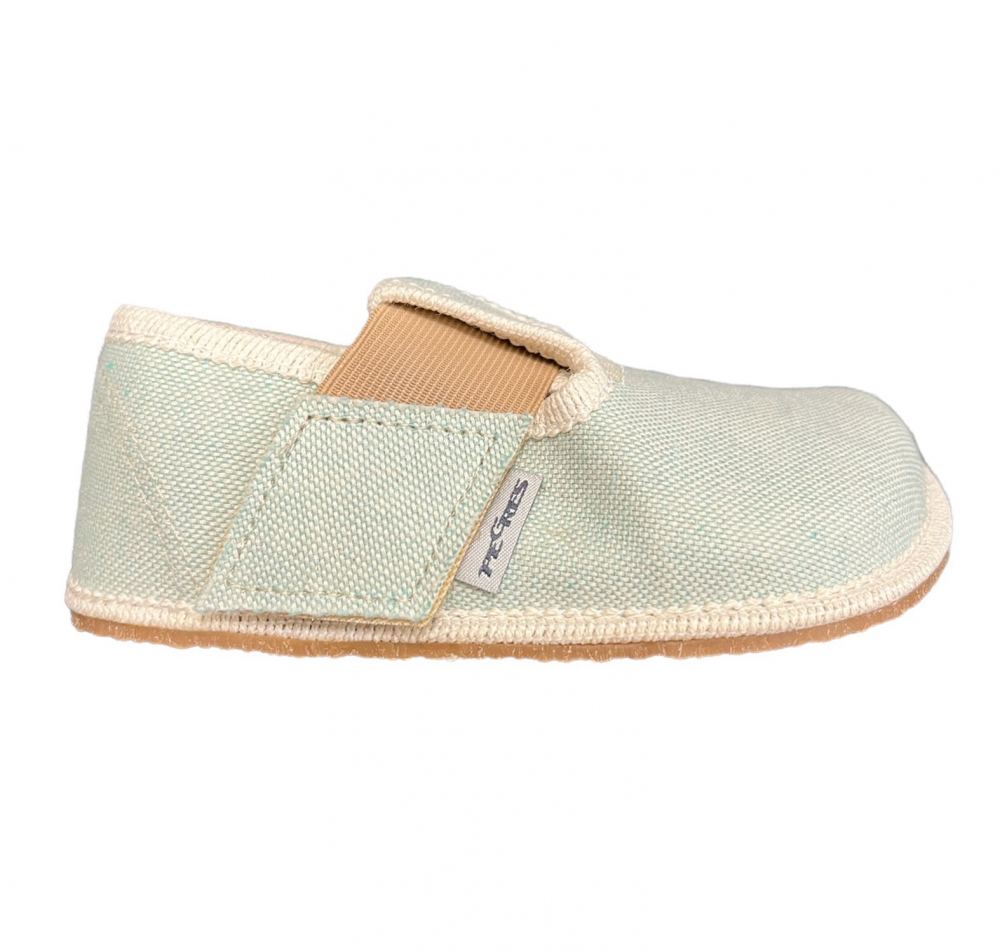Barefootová papučková novinka českej firmy Pegres, ktorá dbá aj na životné prostredie. Papuče sú vyrobené z prírodných a recyklovaných materiálov a sú výbornej kvality. Zvolené materiály splňujú najvyššie štandardy v rámci ekológie. Dizajn je jemný a neutrálny. Majú jeden suchý, hrubší zips na gumičku, vďaka čomu sú maximálne prispôsobiteľné, vhodné aj na vyššie priehlavky. Špička je v prednej časti dostatočne široká, nad prstami je dosť miesta aj na výšku. Sadnú pekne aj detičkám s dominantným palcom a s užšou pätou. Majú tenkú vyberateľnú stielku bez klenby. Sú ľahučké, ohybné priečne aj pozdĺžne.