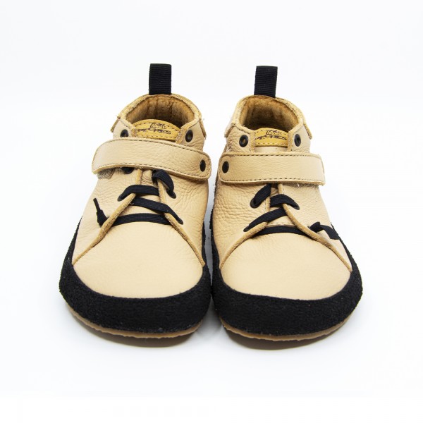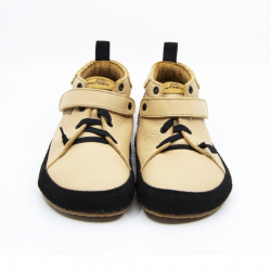 Barefootové vyššie topánky od českej značky Pegres. Majú tenkú gumenú podrážku, ktorá je ohybná v oboch smeroch. Vyrobené sú z kvalitnej certifikovanej a veľmi mäkkej kože. Vo vnútri je vyberateľná netvarovaná stielka. Špička má ideálny tvar, vhodný aj na dominantný palček. Topánočky sa dajú dobre utiahnuť suchým zipsom, a preto sadnú aj na užšie členky. Sedia na normálne široké až širšie nôžky. Okolo topánočiek je pásik z pogumovanej kože, ktorý slúži ako ochrana voči okopaniu. Balenie obsahuje aj šnúrky, ktoré sa dajú použiť miesto gumičky.