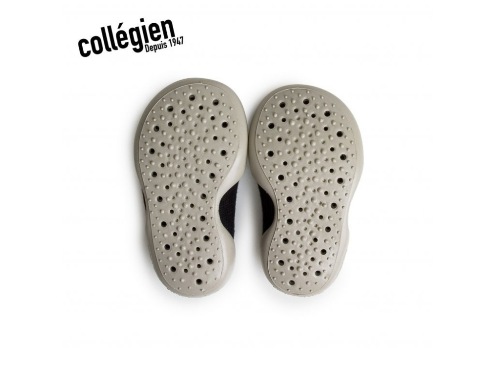 Ponožkové espadrilky od francúzskej značky Collégien pre deti aj dospelých. Vyrábajú sa z kvalitných materiálov, ktoré dokonale spĺňajú požiadavky barefoot obuvi a to najmä vďaka ich pružnosti a ohybnosti. Sú veľmi príjemné a pohodlné na nosenie, perfektne obopnú nohy. Gumená, protišmyková podrážka je špeciálne navrhnutá tak, aby bola ohybná zo všetkých strán a tiež prepúšťala dostatok vzduchu. Dajú sa tiež využiť ako pohodlná obuv na prezutie do školy či práce. Obuv je navrhovaná tak, aby sa presne prispôsobila obvodu nôh- nadmerok by mal byť preto čo najmenší (max. 0,5 cm). Po vytiahnutí stielky je ich možné prať v práčke na 30 stupňových otáčkach.