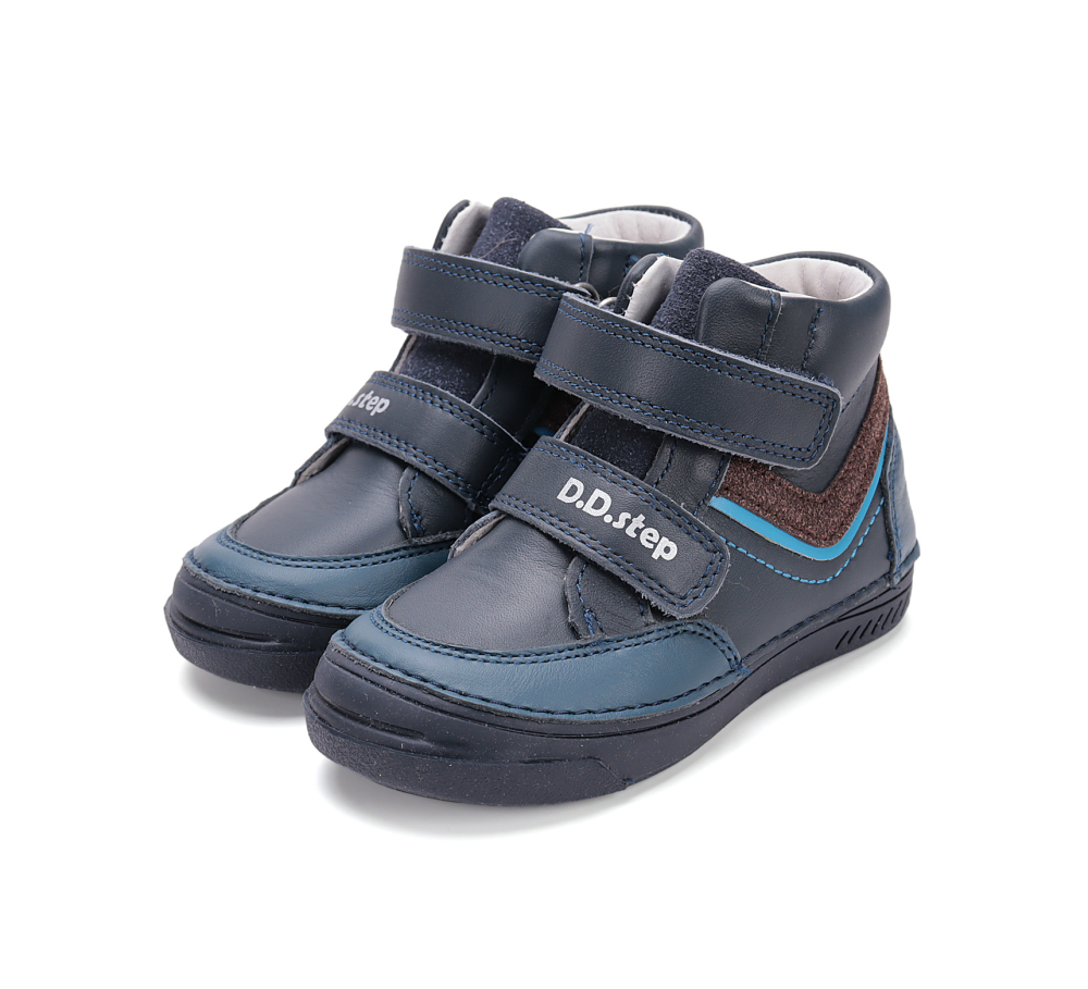 Vyššie celokožené tenisky od značky D.D.Step sedia na normálne široké aj širšie nôžky. Majú kožou potiahnutú, vyberateľnú stielku, ktorá je ortopedicky tvarovaná. Topánočky sa dajú pekne utiahnuť a prispôsobiť tak nôžkam, vďaka dvom suchým zipsom, čo je výhodou aj pre detičky s užšími členkami. Päta je spevnená, chráni nôžku pred nárazmi a poskytuje oporu. Topánočky majú veľmi praktickú pogumovanú špicu, ktorá slúži ako ochrana pred okopaním, vďaka čomu sa maximalizuje ich životnosť. Topánočky majú na sebe vodoodpudivú membránu, ktorá zabraňuje premočeniu. Pozor, nieje však vodeodolná! Údržba a starostlivosť o topánočky je jednoduchá, stačí ich impregnovať a pri ušpinení očistiť jemnou kefkou či vlhkou handričkou. Topánočky sú členkové, ideálne aj na sychravé jarné či jesenné počasie.