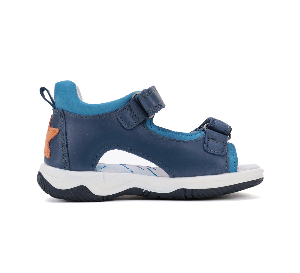 Celokožené sandálky od značky D.D.Step so zatvorenou pätou a otvorenou špicou. Sedia na normálne široké aj širšie nôžky. Sandálky sú prispôsobiteľné dvoma suchými zipsami, vďaka čomu sa vedia pekne prispôsobiť nohám a upevniť ich v topánočkách. Sú príjemne mäkké a pohodlné. Špička je ohybná, pätová oblasť je spevnená a mierne vyvýšená, dobre fixuje členok. Kožená stielka má ortopedicky tvarovanú klenbu.