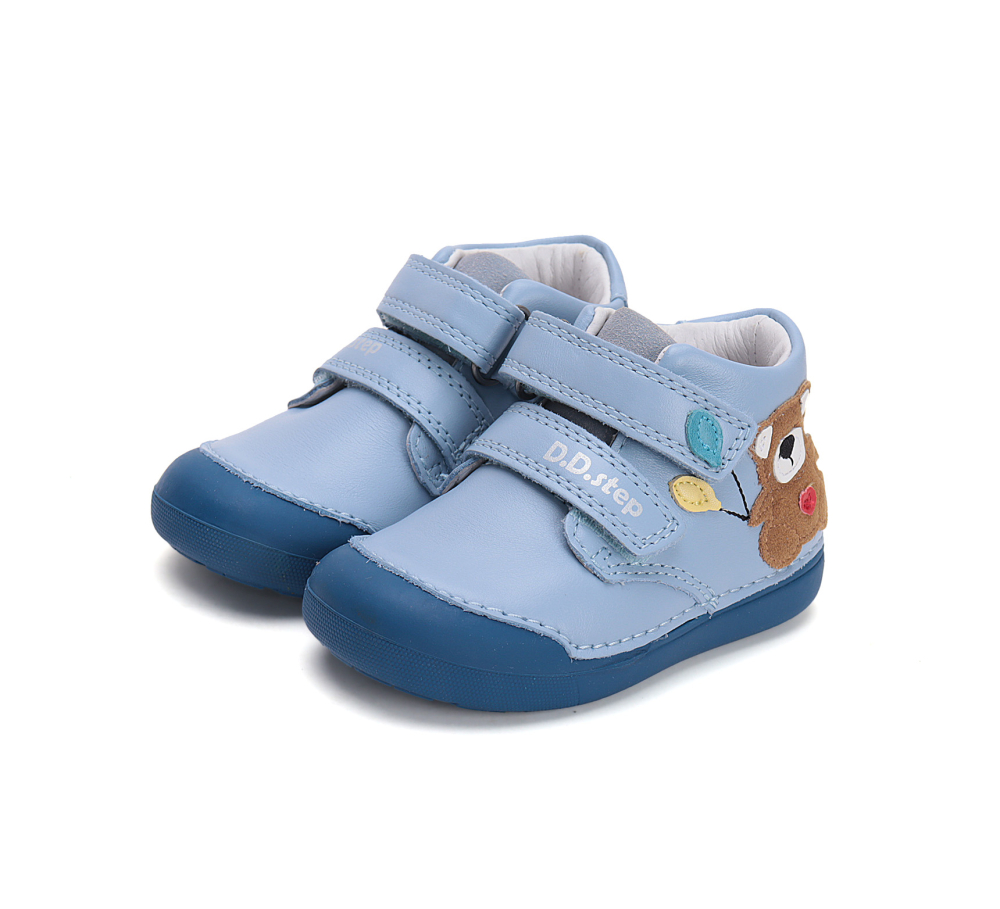 Kožené topánočky od značky D.D.Step s radou podrážky 066, ktorá je považovaná za barefoot, teda Barefeet by D.D.Step. Sú ľahučké, mäkké a veľmi pohodlné. Majú mierne spevnenú pätu a podrážka je ohybná v oboch smeroch, pozdĺžne aj priečne. Sedia na normálne až širšie nôžky a znesú aj mierne vyšší priehlavok. Dajú sa pekne pritiahnuť suchým zipsom, čo je výhodou najmä pre detičky s užšími členkami. Vo vnútri je kožená vyberateľná stielka. Výhodou je najmä praktická pogumovaná špica, ktorá zabráni okopaniu. Údržba a starostlivosť o topánočky je  jednoduchá, stačí ich impregnovať a pri ušpinení šetrne čistiť. Topánočky sú členkové, ideálne aj na sychravé jarné či  jesenné počasie.