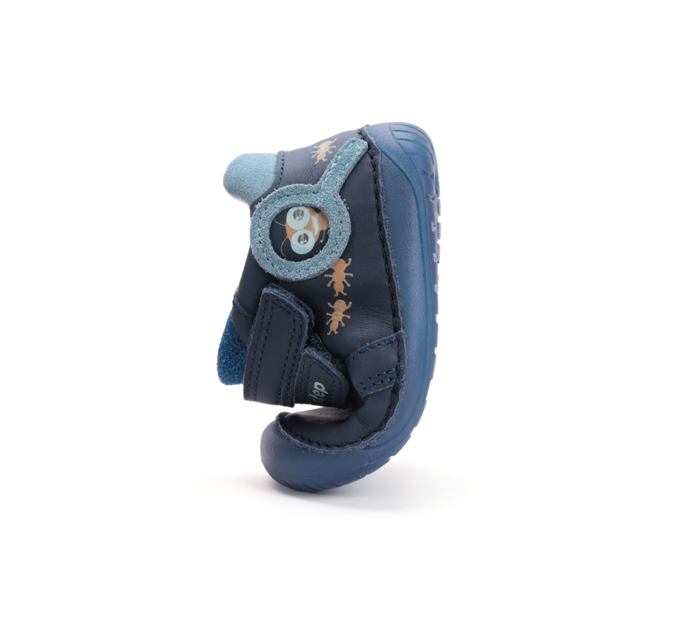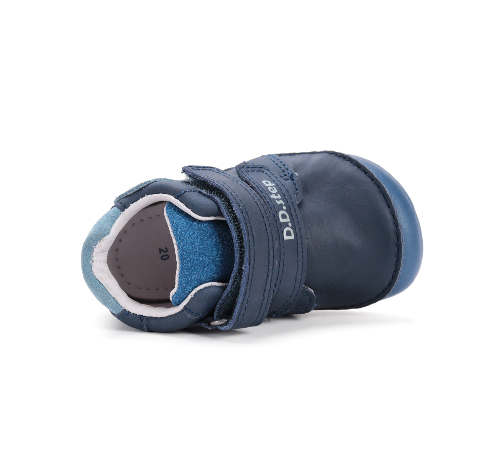 Celokožené barefoot topánky od značky D.D.Step s radou podrážky 070, ktorá je mäkká a flexibilná. Topánočky sú ohybné pozdĺžne aj priečne a špica poskytuje dostatok miesta pre prsty. Zapínajú sa na dva suché zipsy a majú nespevnenú pätovú oblasť. Sedia na normálne široké nôžky, znesú aj mierne vyšší priehlavok. V topánkach sa nachádza vyberateľná, netvarovaná stielka. Majú praktickú, vyvýšenú, pogumovanú špicu, ktorá chráni topánočky pred okopaním, čím sa predlžuje ich životnosť. Údržba a starostlivosť o topánky je jednoduchá, pri sychravom počasí ich stačí impregnovať a po ušpinení čistiť jemne vlhkou handričkou. Topánky majú fosforujúcu podrážku, ktorá v tme svieti (vid. na fotkách), čo možno považovať za reflexný prvok.