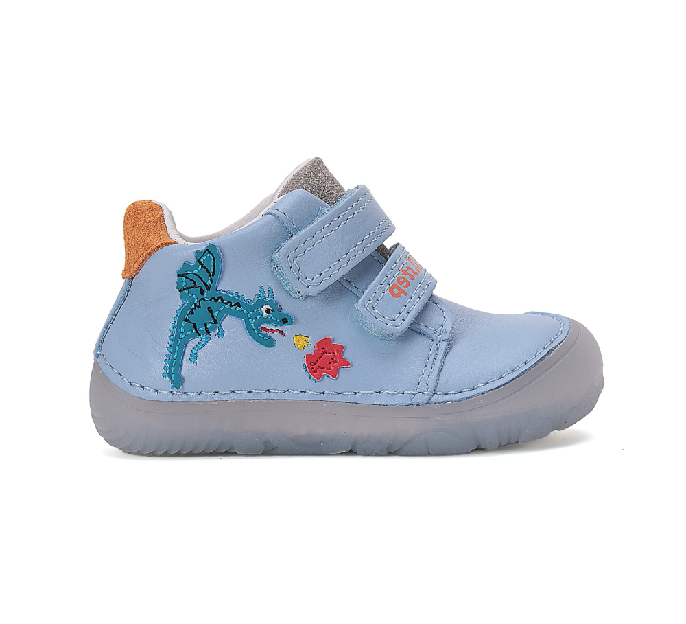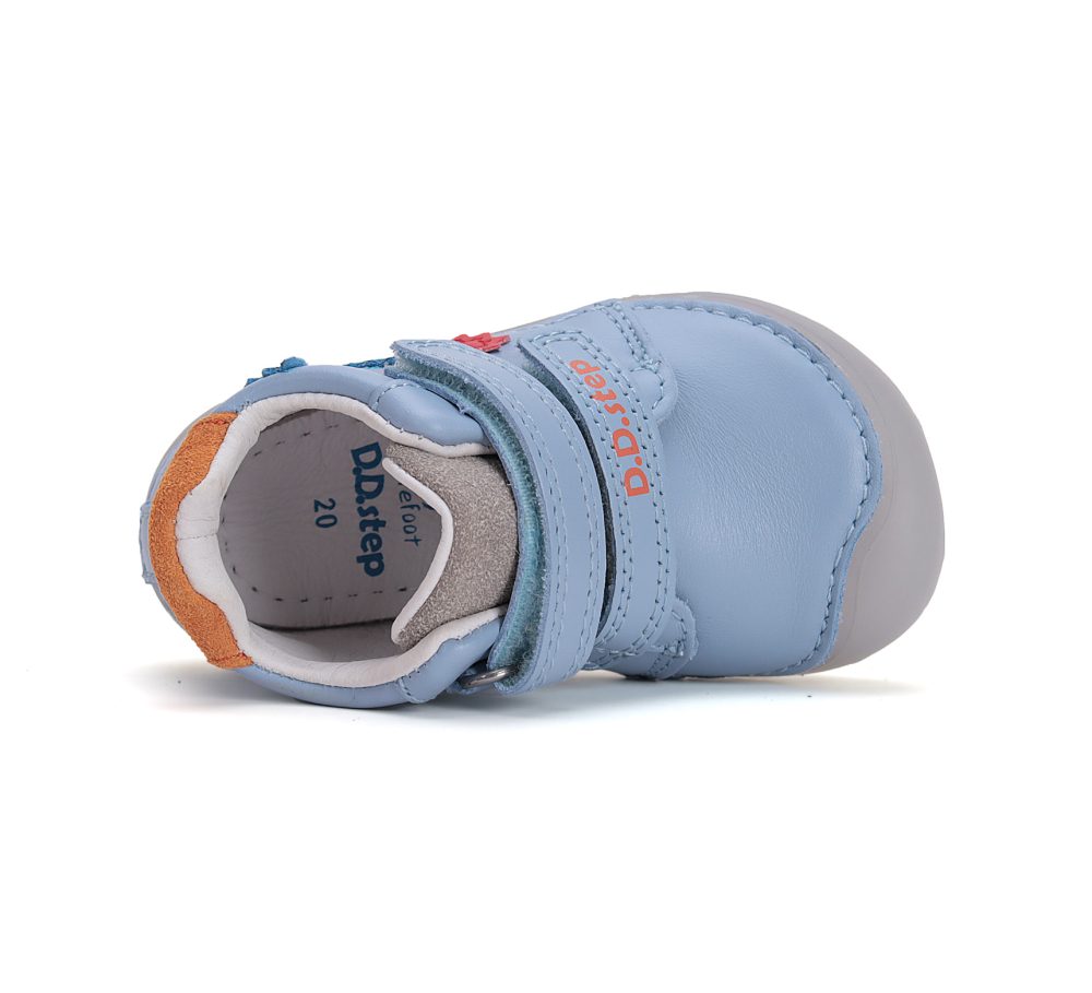 Celokožené barefoot topánky od značky D.D.Step s radou podrážky 073, ktorá je mäkká a flexibilná. Topánočky sú ohybné pozdĺžne aj priečne a špica poskytuje dostatok miesta pre prsty. V porovnaní s radou 063 sú v prednej časti širšie a sú vhodné aj pre dominantné palce. Sedia na normálne široké až širšie nôžky. Majú nespevnenú pätovú oblasť. V topánkach sa nachádza vyberateľná, netvarovaná stielka. Dajú sa pekne utiahnuť vďaka dvom suchým zipsom. Výhodou je najmä praktická, vyvýšená, pogumovaná špica, ktorá chráni topánočky pred okopaním, čím sa predlžuje ich životnosť.