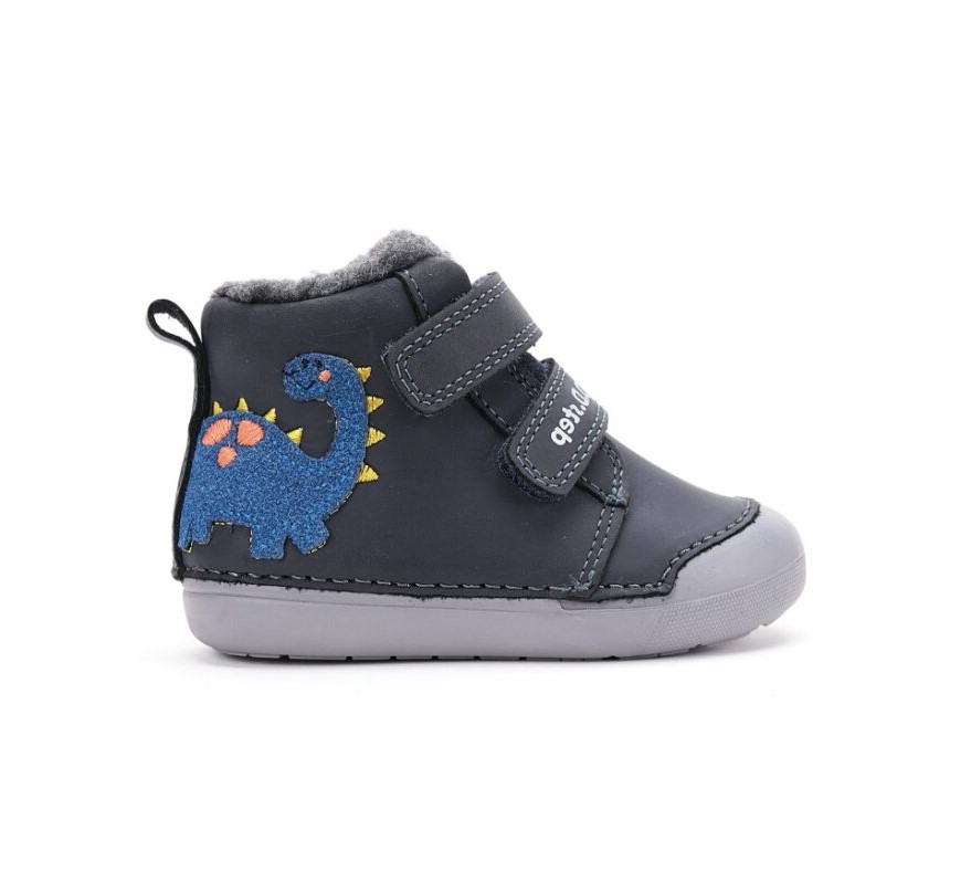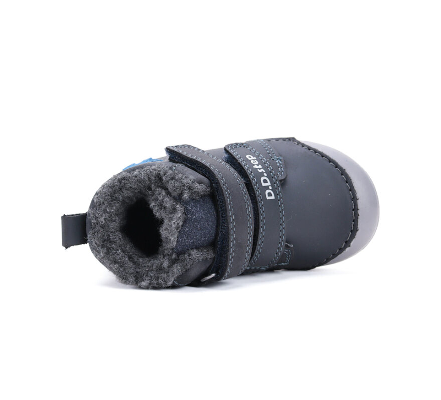 Vyššie, kožené topánočky od značky D.D.Step s radou podrážky 066, ktorá je považovaná za barefoot, teda Barefeet by D.D.Step. Majú mierne spevnenú pätu a podrážka je ohybná v oboch smeroch, pozdĺžne aj priečne. Sedia na normálne až širšie nôžky. Sú zateplené príjemnou, hrejivou kožušinou a dajú sa pekne pritiahnuť dvoma suchými zipsami, čo je výhodou aj pre detičky s užšími členkami. Vo vnútri sa nachádza vyberateľná, zateplená stielka, ktorá nie je tvarovaná. Výhodou je najmä praktická pogumovaná špica, ktorá zabráni okopaniu. Údržba a starostlivosť o topánočky je jednoduchá, stačí ich impregnovať a šetrne čistiť.