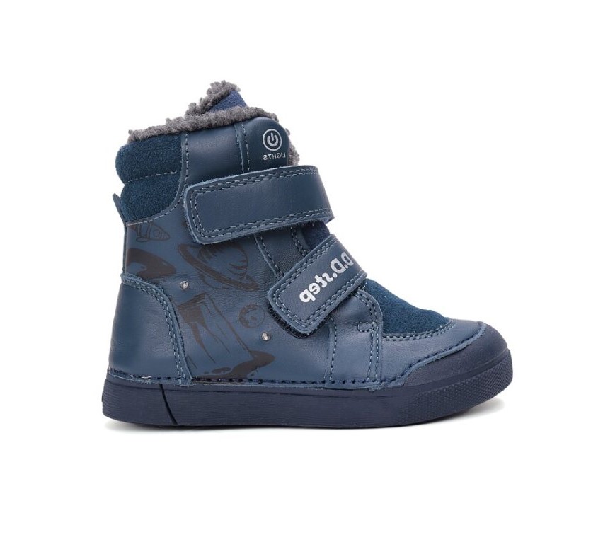 Celokožené, vyššie topánky od značky D.D.Step. Sedia na normálne široké aj širšie nôžky a sú zateplené príjemnou, hrejivou kožušinou. Vo vnútri sa nachádza vyberateľná, zateplená stielka, ktorá je tvarovaná. Majú pevnú pätu. Výhodou je najmä praktická pogumovaná špica, ktorá zabráni okopaniu, čím sa predlžuje ich životnosť. Dajú sa pekne utiahnuť dvoma suchými zipsami, vďaka čomu sa prispôsobia i užším členkom. Topánočky sú mäkké a ohybné. Starostlivosť a údržba topánok je jednoduchá, stačí ich pravidelne impregnovať a šetrne čistiť. Topánočky blikajú, (viď. foto) čo možno považovať za reflexný prvok.