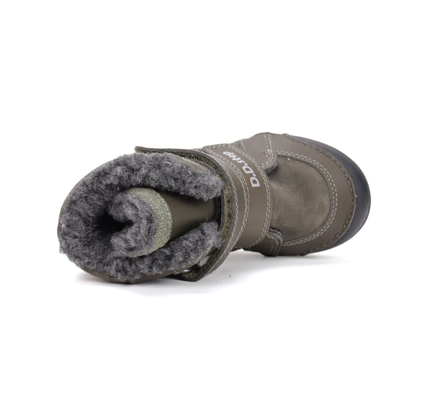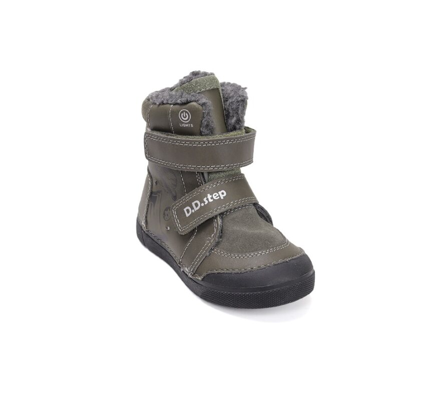 Celokožené, vyššie topánky od značky D.D.Step. Sedia na normálne široké aj širšie nôžky a sú zateplené príjemnou, hrejivou kožušinou. Vo vnútri sa nachádza vyberateľná, zateplená stielka, ktorá je tvarovaná. Majú pevnú pätu. Výhodou je najmä praktická pogumovaná špica, ktorá zabráni okopaniu, čím sa predlžuje ich životnosť. Dajú sa pekne utiahnuť dvoma suchými zipsami, vďaka čomu sa prispôsobia i užším členkom. Topánočky sú mäkké a ohybné. Starostlivosť a údržba topánok je jednoduchá, stačí ich pravidelne impregnovať a šetrne čistiť. Topánočky blikajú, (viď. foto) čo možno považovať za reflexný prvok.