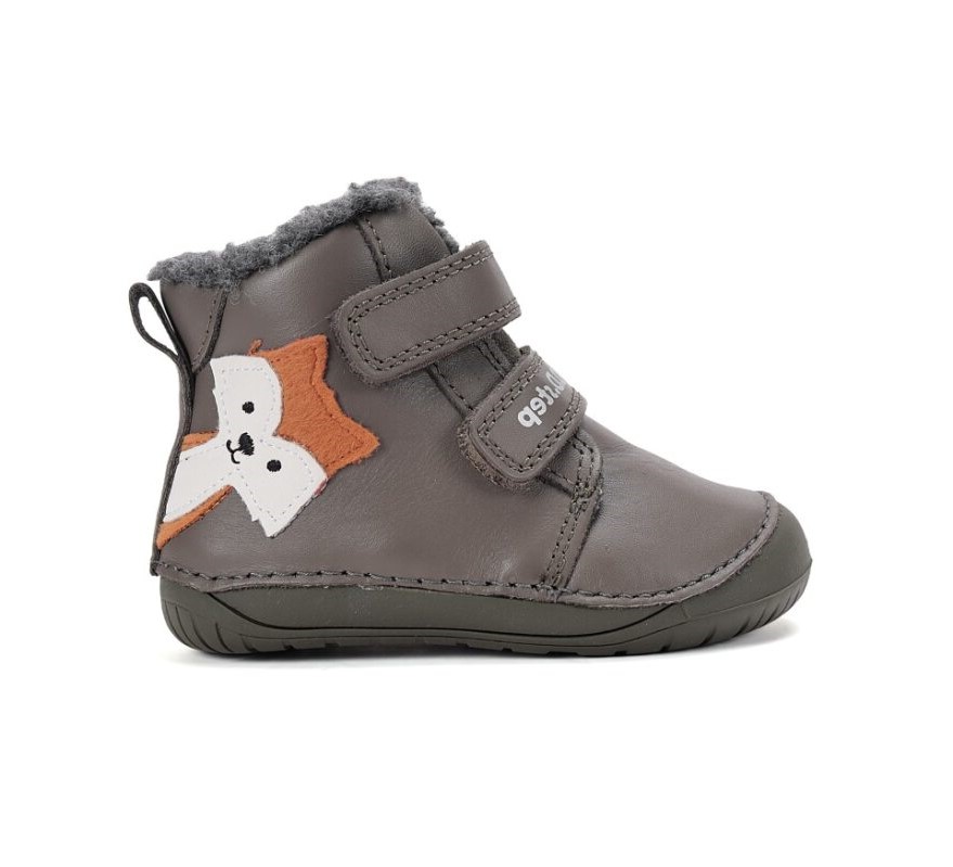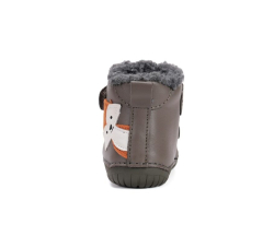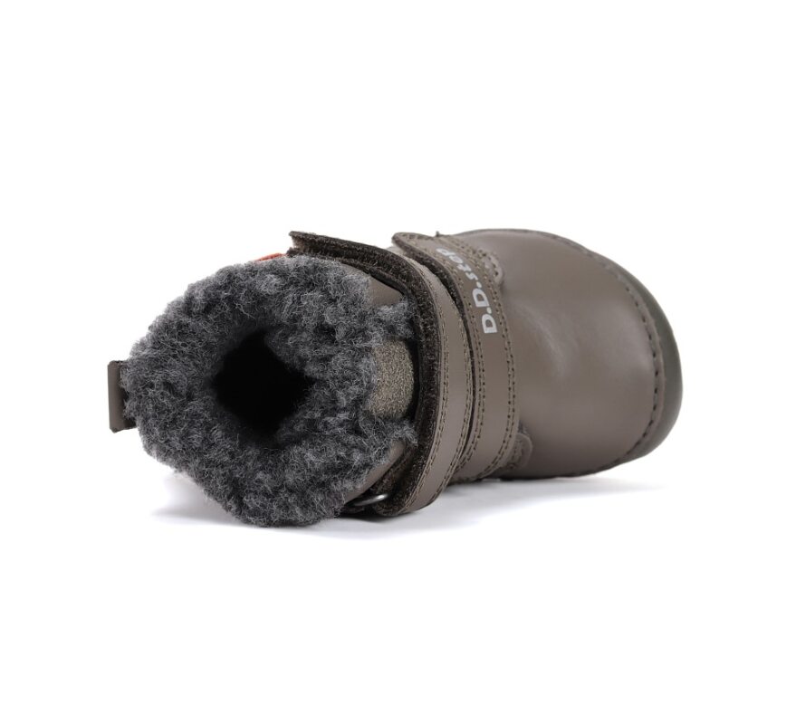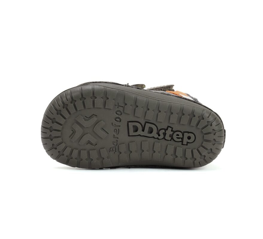 Vyššie, kožené barefoot topánočky od značky D.D.Step s radou podrážky 070, ktorá je mäkká a flexibilná. Topánky sú ohybné pozdĺžne aj priečne a špica poskytuje dostatok miesta pre prsty. Zapínajú sa na dva suché zipsy a majú nespevnenú pätovú oblasť. Sedia na normálne široké nôžky, znesú aj mierne vyšší priehlavok. Sú zateplené príjemnou, hrejivou kožušinou a vo vnútri sa nachádza zateplená, vyberateľná stielka bez vytvarovanej klenby. Výhodou je najmä praktická pogumovaná špica, ktorá zabráni okopaniu. Údržba a starostlivosť o topánočky je jednoduchá, stačí ich impregnovaťa šetrne čistiť.