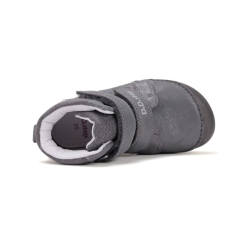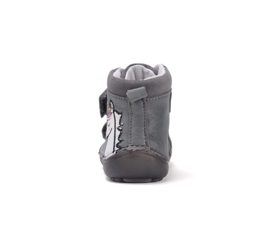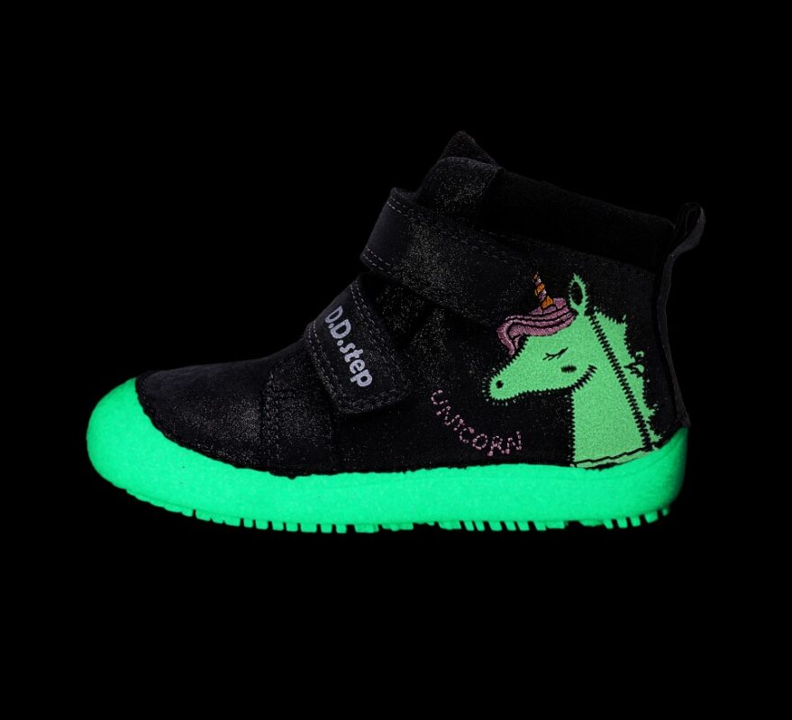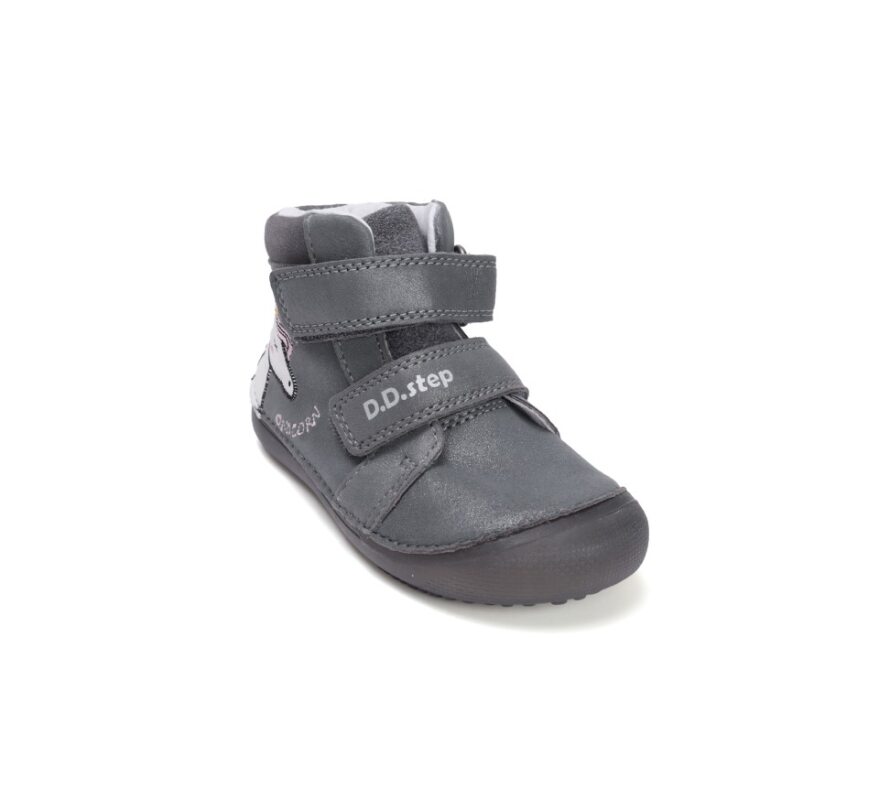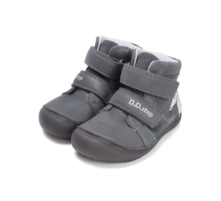 Celokožené barefoot topánky od značky D.D.Step s radou podrážky 063, ktorá je mäkká a flexibilná. Topánočky sú ohybné pozdĺžne aj priečne a zaguľatená špica poskytuje dostatok miesta pre prsty. Dajú sa pekne utiahnuť vďaka dvom suchým zipsom. Majú nespevnenú pätovú oblasť. Sedia na normálne široké nôžky aj na dominantné palce. V topánkach sa nachádza vyberateľná, netvarovaná stielka. Výhodou je najmä praktická pogumovaná špica, ktorá zabráni okopaniu. Údržba a starostlivosť o topánočky je jednoduchá, stačí ich impregnovať a pri ušpinení očistiť jemnou kefkou či vlhkou handričkou. Topánočky sú členkové, ideálne aj na sychravé jarné či jesenné počasie. Topánočky majú fosforujúcu podrážku v tme (viď. foto). Čo možno považovať za reflexný prvok.