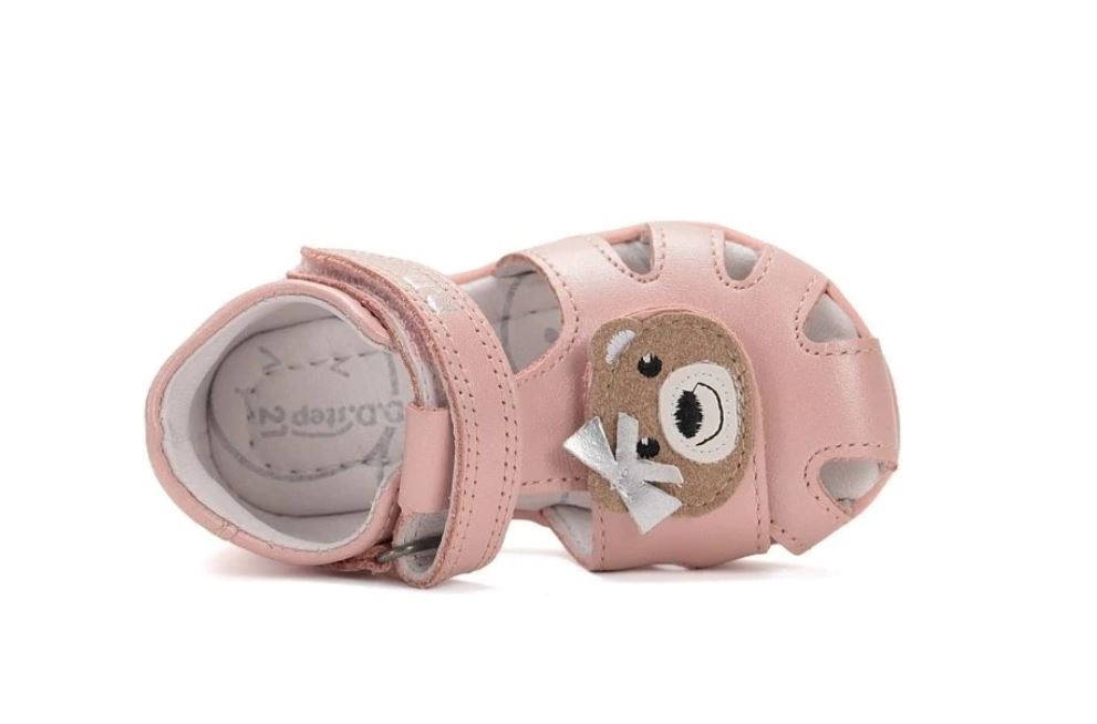 Celokožené sandálky od značky D.D.Step so zatvorenou pätou a špicou. Sedia na normálne široké aj širšie nôžky. Sandálky sú prispôsobiteľné dvoma suchými zipsami, vďaka čomu sa vedia pekne prispôsobiť nohám a upevniť ich v topánočkách. Sú príjemne mäkké a pohodlné. Špička je ohybná, pätová oblasť je spevnená a mierne vyvýšená, takže dobre fixuje členok. Kožená stielka má ortopedicky tvarovanú klenbu.