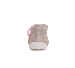 Kožené topánočky od značky D.D.Step sú ľahučké a mäkké. Jedná sa o radu 015, ktorá je považovaná za alternatívu barefootu. Majú mierne spevnenú pätu, ale podrážka je ohybná v oboch smeroch, pozdĺžne aj priečne. Sedia na normálne aj širšie nôžky. Dajú sa pekne pritiahnuť dvoma suchými zipsami, čo je výhodou najmä pre detičky s užšími členkami. Vo vnútri je kožená, vyberateľná stielka. Výhodou je najmä praktická pogumovaná špica, ktorá zabráni okopaniu. Povrch topánok je vodo-odpudivý, nie však nepremokavý, preto je odporúčaná pravidelná impregnácia, vďaka ktorej je obuv odolnejšia a zostáva chránená pred vonkajšími vplyvmi. Údržba a starostlivosť o topánočky  je jednoduchá, pri ušpinení stačí šetrne očistiť vlhkou handričkou.