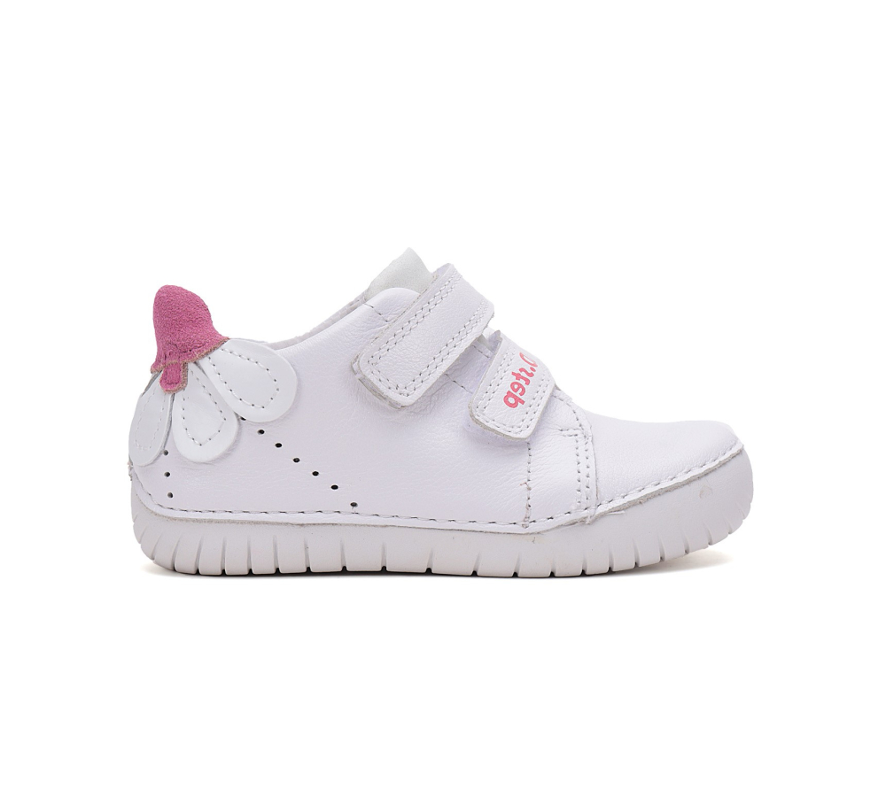 Celokožené, mäkké tenisky od značky D.D.Step. Sedia na normálne široké až širšie nôžky a majú spevnenú pätu. Zapínajú sa na dva suché zipsy, vďaka čomu sa dajú pekne pritiahnuť k nôžkam. Vo vnútri je kožená mierne vytvarovaná a vyberateľná stielka. Výhodou je najmä praktická pogumovaná špica, ktorá zabráni okopaniu, čím sa predlžuje životnosť topánok. Údržba a starostlivosť o topánky je jednoduchá,v sychravom počasí ich stačí impregnovať a pri ušpinení šetrne čistiť. Topánočky sú z rady sun reactive, čo znamená, že na svetle zmenia farbu obrázku (viď. foto)