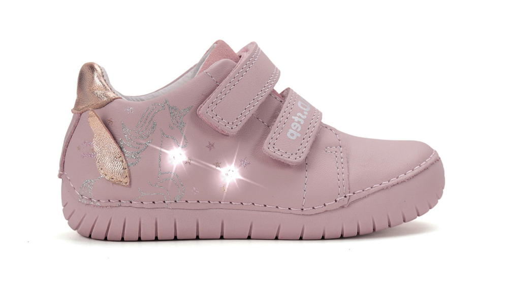 Celokožené tenisky od značky D.D.Step. Sedia na normálne široké až širšie nôžky. Zapínajú sa na dva suché zipsy, vďaka čomu sa dajú pekne pritiahnuť a majú pevnú pätu. Vo vnútri je kožená, mierne vytvarovaná a vyberateľná stielka. Výhodou je najmä praktická pogumovaná špica, ktorá zabráni okopaniu, čím sa predlžuje životnosť topánok. Topánočky pri chôdzi blikajú, čo možno považovať aj za reflexný prvok. Na topánkach sa nachádza spúšťač, ktorým možno blikanie podľa potreby vypnúť/ zapnúť. Starostlivosť a údržba topánok je jednoduchá, stačí ich impregnovať a pri ušpinení šetrne čistiť.