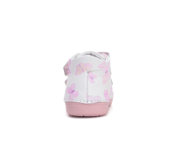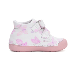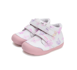 Kožené topánočky od značky D.D.Step s radou podrážky 066, ktorá je považovaná za barefoot, teda Barefeet by D.D.Step. Sú ľahučké, mäkké a veľmi pohodlné. Majú mierne spevnenú pätu a podrážka je ohybná v oboch smeroch, pozdĺžne aj priečne. Sedia na normálne až širšie nôžky a znesú aj mierne vyšší priehlavok. Dajú sa pekne pritiahnuť suchým zipsom, čo je výhodou najmä pre detičky s užšími členkami. Vo vnútri je kožená vyberateľná stielka. Výhodou je najmä praktická pogumovaná špica, ktorá zabráni okopaniu. Údržba a starostlivosť o topánočky je jednoduchá, stačí ich impregnovať a pri ušpinení očistiť jemnou kefkou či vlhkou handričkou. Topánočky sú členkové, ideálne aj na sychravé jarné či jesenné počasie