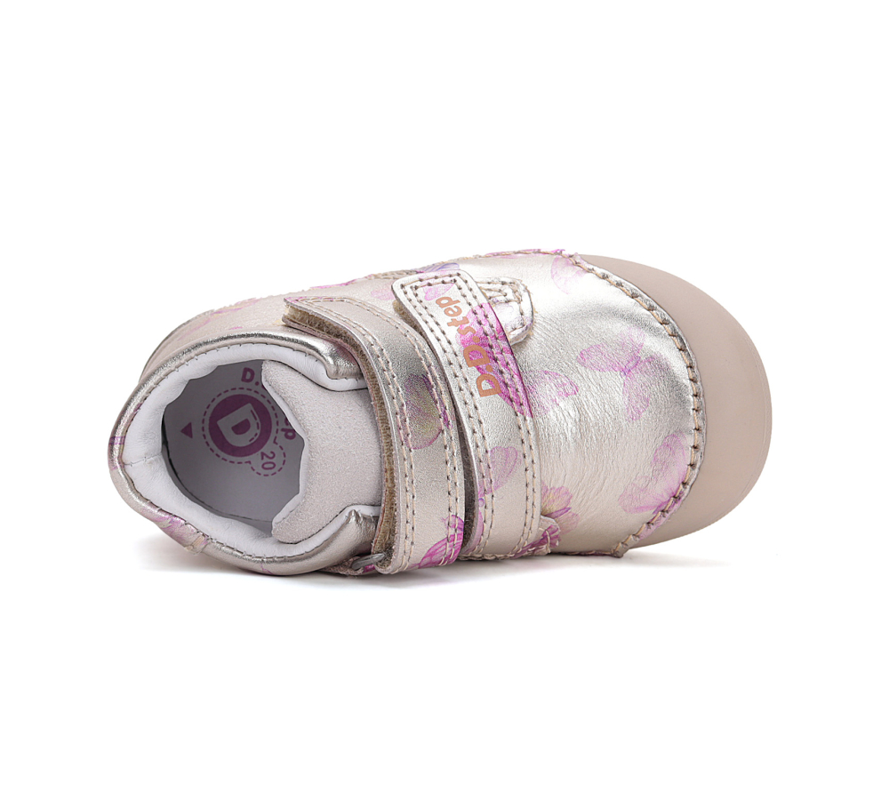 Kožené topánočky od značky D.D.Step s radou podrážky 066, ktorá je považovaná za barefoot, teda Barefeet by D.D.Step. Sú ľahučké, mäkké a veľmi pohodlné. Majú mierne spevnenú pätu a podrážka je ohybná v oboch smeroch, pozdĺžne aj priečne. Sedia na normálne až širšie nôžky a znesú aj mierne vyšší priehlavok. Dajú sa pekne pritiahnuť suchým zipsom, čo je výhodou najmä pre detičky s užšími členkami. Vo vnútri je kožená vyberateľná stielka. Výhodou je najmä praktická pogumovaná špica, ktorá zabráni okopaniu. Údržba a starostlivosť o topánočky je  jednoduchá, stačí ich impregnovať a pri ušpinení očistiť jemnou kefkou či vlhkou handričkou. Topánočky sú členkové, ideálne aj na sychravé jarné či  jesenné počasie