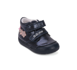 Kožené topánočky od značky D.D.Step s radou podrážky 066, ktorá je považovaná za barefoot, teda Barefeet by D.D.Step. Sú ľahučké, mäkké a veľmi pohodlné. Majú mierne spevnenú pätu a podrážka je ohybná v oboch smeroch, pozdĺžne aj priečne. Sedia na normálne až širšie nôžky a znesú aj mierne vyšší priehlavok. Dajú sa pekne pritiahnuť dvoma suchými zipsami, čo je výhodou najmä pre detičky s užšími členkami. Vo vnútri je kožená vyberateľná stielka. Výhodou je najmä praktická pogumovaná špica, ktorá zabráni okopaniu. Povrch topánok je vodo-odpudivý, nie však nepremokavý, preto je odporúčaná pravidelná impregnácia, vďaka ktorej je obuv odolnejšia a zostáva chránená pred vonkajšími vplyvmi.Údržba a starostlivosť o topánočky je jednoduchá, stačí ich impregnovať a pri ušpinení očistiť jemnou kefkou či vlhkou handričkou. Topánočky sú členkové, ideálne aj na sychravé jarné či jesenné počasie