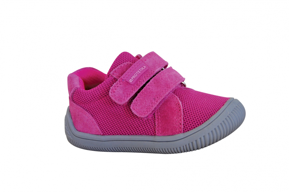 Sieťované barefootové tenisky od značky Protetika. Vďaka flexibilnej podrážke sú topánočky ohybné v oboch smeroch, pozdĺžne aj priečne. Sú ľahké a poskytujú dostatočný priestor pre prsty. Špica je anatomicky tvarovaná, vhodná aj pre dominantný palček. Sedia na normálne široké, aj užšie nôžky. Znesú vyšší priehlavok a širšie členky. Nohu uťahujú dva suché zipsy, ktoré sa dajú pekne pritiahnuť ku členkom, avšak vo väčších veľkostiach nie sú vhodné pre deti s príliš úzkymi členkami, pretože ich nedokážu dostatočne obopnúť. Topánky majú vyvýšenú pogumovanú špicu, ktorá ich chráni pred okopaním, čím sa predlžuje ich životnosť. Zvršok zo sieťoviny zabezpečuje nožičkám prievzdušnosť a činí topánočky ľahkými a vzdušnými.