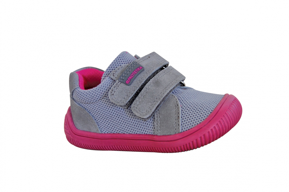 Sieťované barefootové tenisky od značky Protetika. Vďaka flexibilnej podrážke sú topánočky ohybné v oboch smeroch, pozdĺžne aj priečne. Sú ľahké a poskytujú dostatočný priestor pre prsty. Špica je anatomicky tvarovaná, vhodná aj pre dominantný palček. Sedia na normálne široké, aj užšie nôžky. Znesú vyšší priehlavok a širšie členky. Nohu uťahujú dva suché zipsy, ktoré sa dajú pekne pritiahnuť ku členkom, avšak vo väčších veľkostiach nie sú vhodné pre deti s príliš úzkymi členkami, pretože ich nedokážu dostatočne obopnúť. Topánky majú vyvýšenú pogumovanú špicu, ktorá ich chráni pred okopaním, čím sa predlžuje ich životnosť. Zvršok zo sieťoviny zabezpečuje nožičkám prievzdušnosť a činí topánočky ľahkými a vzdušnými .