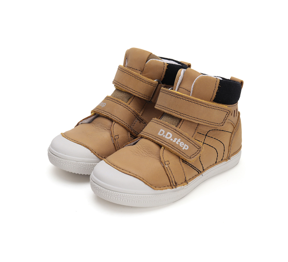 Vyššie celokožené tenisky od značky D.D.Step v štýlovom dievčenskom prevedení. Sedia na normálne široké aj širšie nôžky. Majú kožou potiahnutú, vyberateľnú stielku, ktorá je ortopedicky tvarovaná. Topánočky sa dajú pekne utiahnuť a prispôsobiť tak nôžkam, vďaka dvom suchým zipsom, čo je výhodou aj pre detičky s užšími členkami. Päta je spevnená, chráni nôžku pred nárazmi a poskytuje oporu. Topánočky majú veľmi praktickú pogumovanú špicu, ktorá slúži ako ochrana pred okopaním, vďaka čomu sa maximalizuje ich životnosť.Topánočky sú členkové, ideálne aj na sychravé jarné či jesenné počasie.Údržba a starostlivosť o topánočky je jednoduchá, stačí ich impregnovať a pri ušpinení šetrne čistiť.