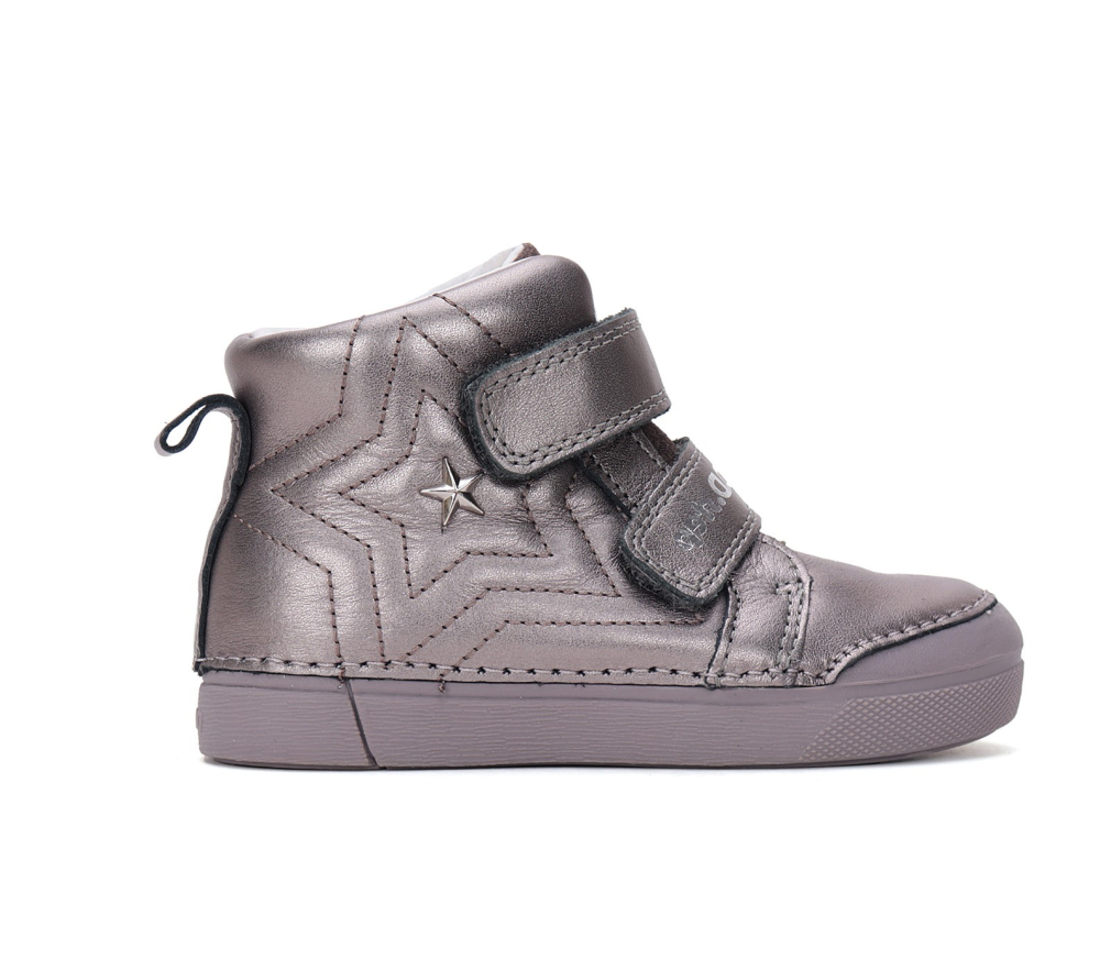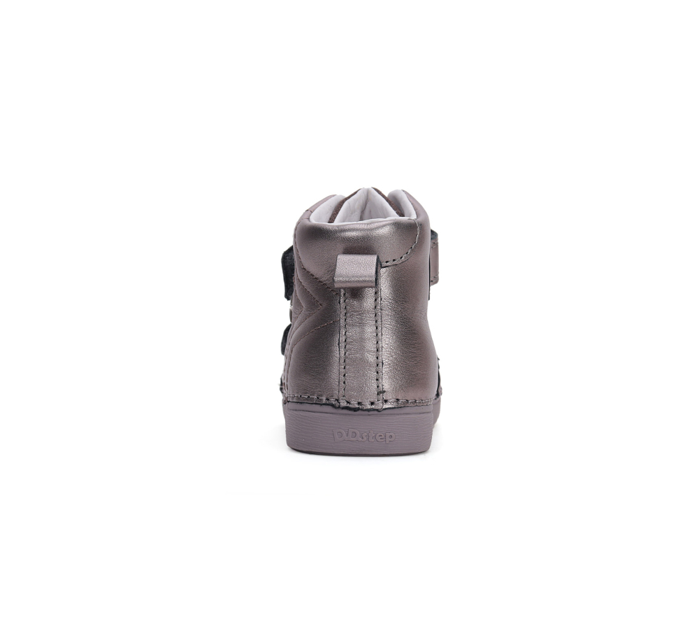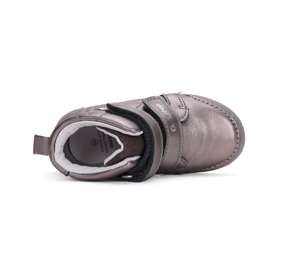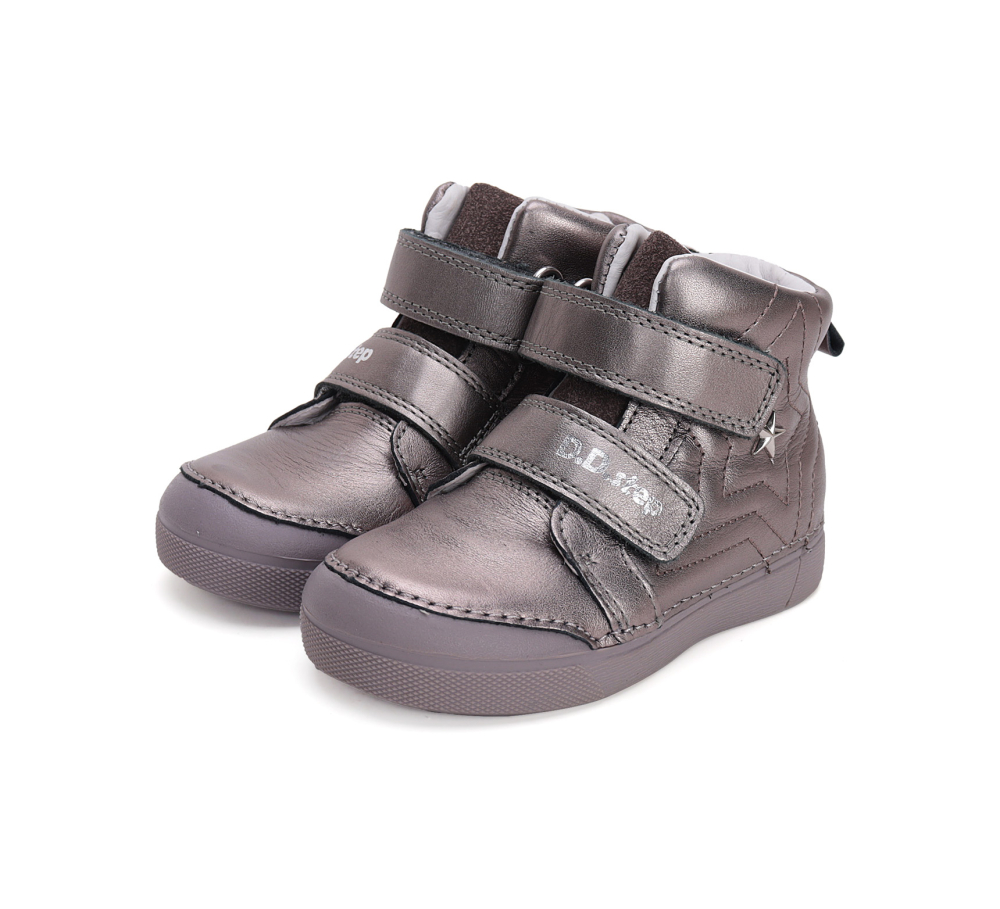 Vyššie celokožené tenisky od značky D.D.Step. Sedia na normálne široké aj širšie nôžky. Majú kožou potiahnutú, vyberateľnú stielku, ktorá je ortopedicky tvarovaná. Topánočky sa dajú pekne utiahnuť a prispôsobiť tak nôžkam, vďaka dvom suchým zipsom, čo je výhodou aj pre detičky s užšími členkami. Päta je spevnená, chráni nôžku pred nárazmi a poskytuje oporu. Topánočky majú veľmi praktickú pogumovanú špicu, ktorá slúži ako ochrana pred okopaním, vďaka čomu sa maximalizuje ich životnosť. Topánočky sú členkové, ideálne aj na sychravé jarné či jesenné počasie. Údržba a starostlivosť o topánky je jednoduchá, pri sychravom počasí ich stačí impregnovať a po ušpinení šetrne čistiť.