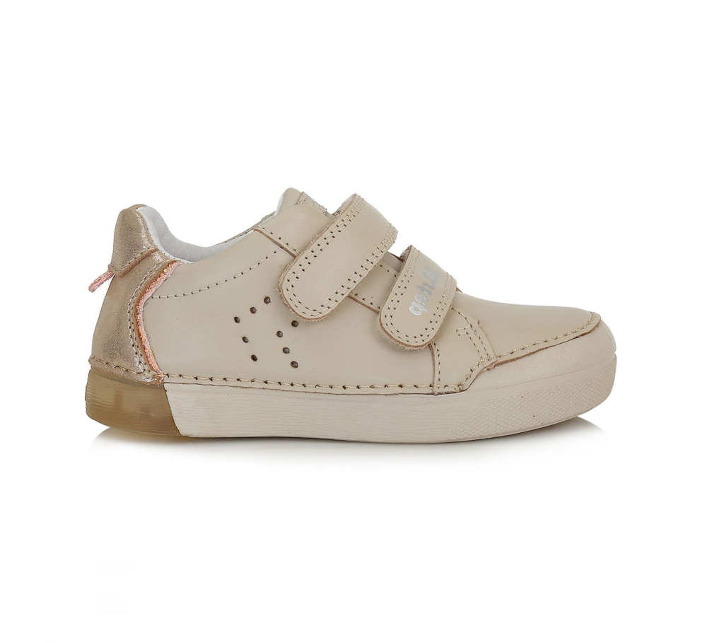 Celokožené tenisky od značky D.D.Step. Sedia na normálne široké až širšie nôžky. Zapínajú sa na dva suché zipsy, vďaka čomu sa dajú pekne pritiahnuť k nôžkam. Vo vnútri je kožená mierne vytvarovaná a vyberateľná stielka. Výhodou je najmä praktická pogumovaná špica, ktorá zabráni okopaniu, čím sa maximalizuje životnosť topánok. Údržba a starostlivosť je jednoduchá, topánočky stačí impregnovať a šetrne čistiť.