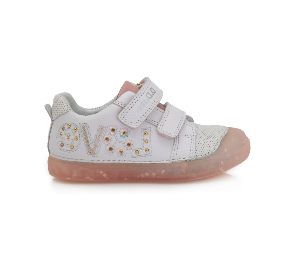 Celokožené tenisky od značky D.D.Step. Sedia na normálne široké až širšie nôžky. Zapínajú sa na dva suché zipsy, vďaka čomu sa dajú pekne pritiahnuť. Vo vnútri je kožená mierne vytvarovaná a vyberateľná stielka. Výhodou je najmä praktická pogumovaná špica, ktorá zabráni okopaniu, čím sa predlžuje životnosť topánok. Údržba je jednoduchá, stačí topánočky impregnovať.
