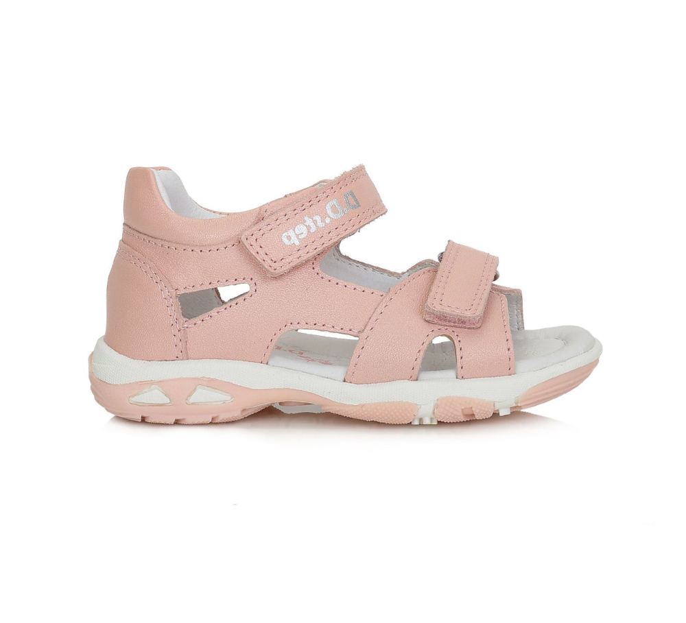 Celokožené sandálky od značky D.D.Step so zatvorenou pätou a otvorenou špicou. Sedia na normálne široké aj širšie nôžky. Sandálky sú prispôsobiteľné dvoma suchými zipsami, vďaka čomu sa vedia pekne prispôsobiť nohám a upevniť ich v topánočkách. Sú príjemne mäkké a pohodlné. Špička je ohybná, pätová oblasť je spevnená a mierne vyvýšená, dobre fixuje členok. Kožená stielka má ortopedicky tvarovanú klenbu.