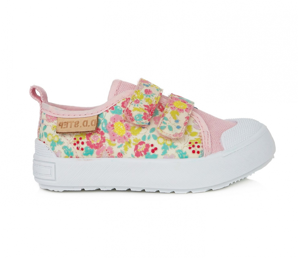 Ľahké a mäkké plátené tenisky od značky D.D. Step. Nôžku v topánke fixujú dva suché zipsy, ktoré sa dajú ľahko prispôsobiť. Sedia na normálne širokú až širšiu nôžku a obujú ich aj deti s vyšším priehlavkom. Vo vnútri topánočiek sa nachádza vyberateľná, kožená stielka. Výhodou je najmä praktická pogumovaná špica, ktorá zabráni okopaniu.