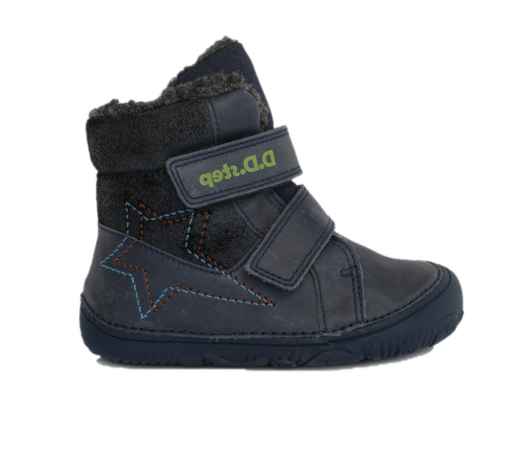 Celokožené barefoot topánky od značky D.D.Step s novou radou podrážky 073, ktorá je mäkká a flexibilná. Topánočky sú ohybné pozdĺžne aj priečne a špica poskytuje dostatok miesta pre prsty. V porovnaní s radou 063 sú v prednej časti širšie a sú vhodné aj pre dominantné palce. Sedia na normálne široké až širšie nôžky. Majú nespevnenú pätovú oblasť. Sú vhodné na nižší a normálne vysoký priehlavok. Vnútro majú zateplené príjemnou kožušinou. V topánkach sa nachádza vyberateľná, netvarovaná stielka, ktorá je tiež zateplená. Dajú sa pekne utiahnuť vďaka dvom suchým zipsom. Výhodou je najmä praktická, vyvýšená, pogumovaná špica, ktorá chráni topánočky pred okopaním, čím sa predlžuje ich životnosť. Starostlivosť a údržba topánok je jednoduchá, stačí ich impregnovať.