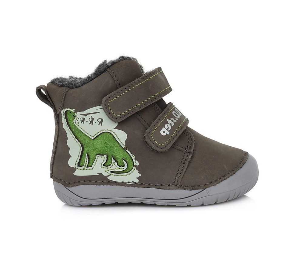 Vyššie, kožené barefoot topánočky od značky D.D.Step s radou podrážky 070, ktorá je mäkká a flexibilná. Topánky sú ohybné pozdĺžne aj priečne a špica poskytuje dostatok miesta pre prsty. Zapínajú sa na dva suché zipsy a majú nespevnenú pätovú oblasť. Sedia na normálne široké nôžky, znesú aj mierne vyšší priehlavok. Sú zateplené príjemnou, hrejivou kožušinou a vo vnútri sa nachádza zateplená, vyberateľná stielka bez vytvarovanej klenby. Výhodou je najmä praktická pogumovaná špica, ktorá zabráni okopaniu. Údržba a starostlivosť o topánočky je jednoduchá, stačí ich pravidelne impregnovať a šetrne čistiť.