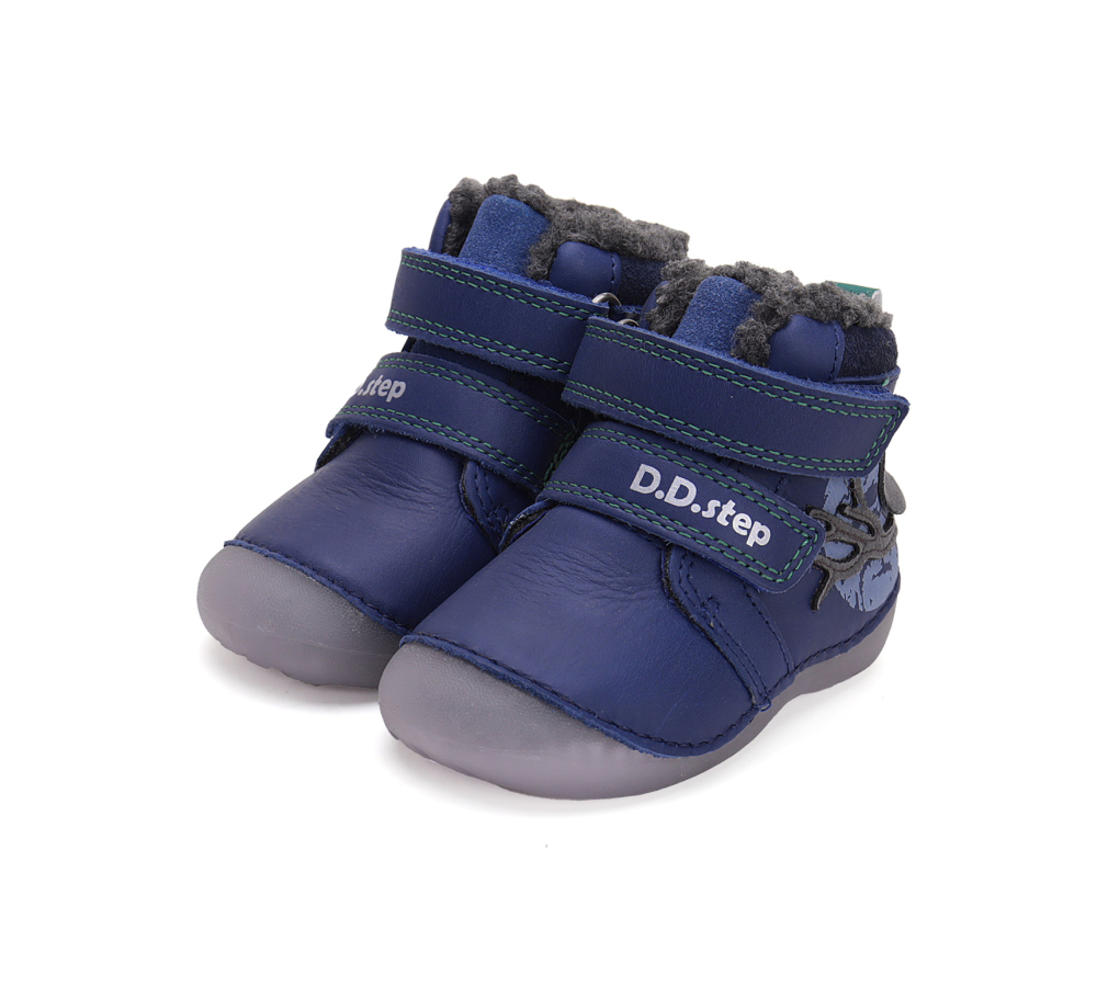 Celokožené, zimné topánky od značky D.D.Step. Sedia na normálne širokú až širšiu nôžku a sú mäkké a ohybné. Sú zateplené príjemnou kožušinou a dajú sa pekne utiahnuť dvoma suchými zipsami. Jedná sa o radu 015, ktorá je považovaná za alternatívu barefootu. Majú mierne spevnenú pätu, ale podrážka je ohybná pozdĺžne aj priečne. Majú praktickú, vyvýšenú, pogumovanú špicu, ktorá slúži ako ochrana pred okopaním čím sa predlžuje životnosť topánok. Podrážka je vyrobená zo špeciálneho materiálu, vďaka ktorému svieti v tme, čo možno považovať aj za reflexný prvok. Údržba a starostlivosť o topánky je jednoduchá, stačí ich pravidelne impregnovať a šetrne čistiť.