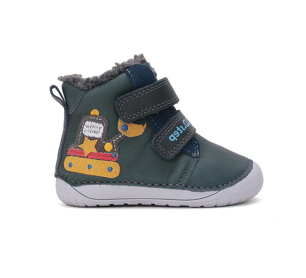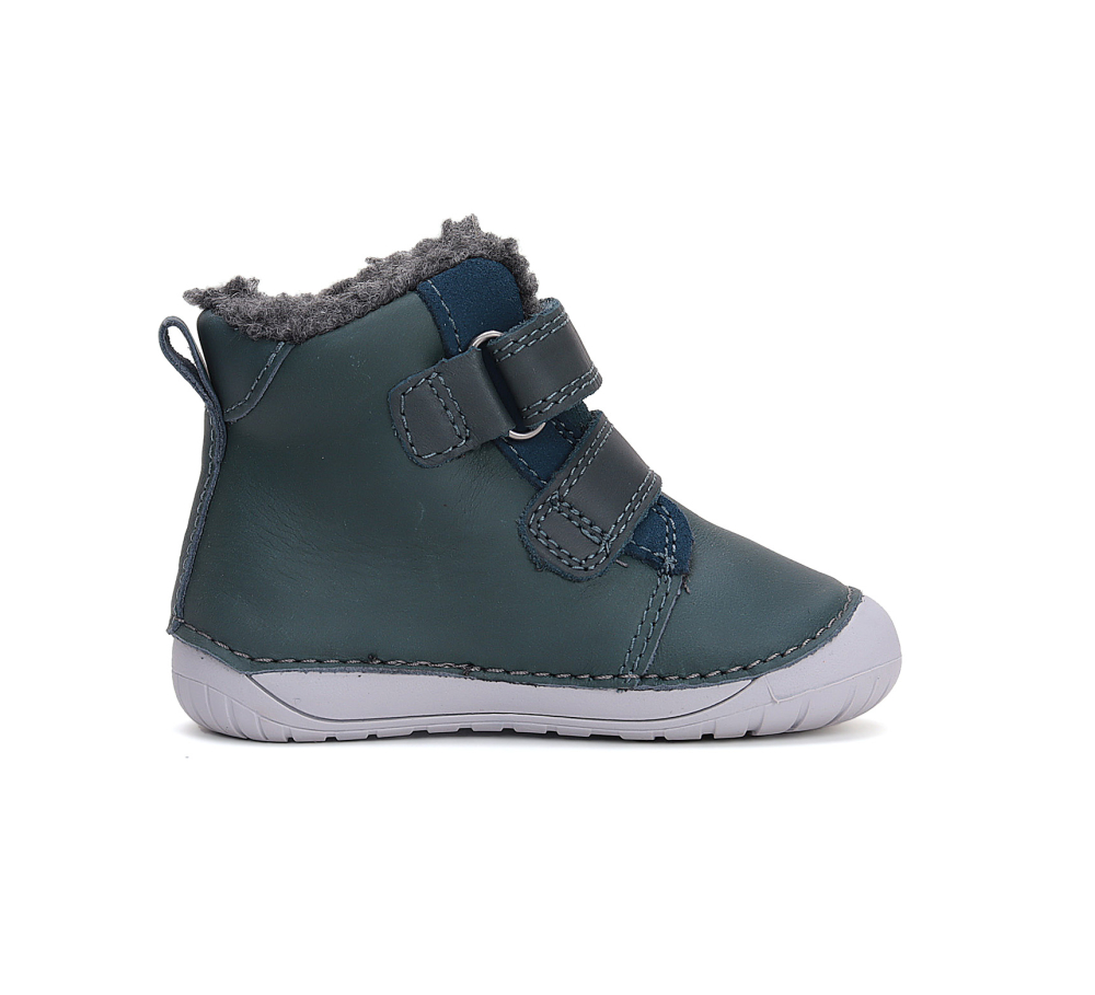 Vyššie, kožené barefoot topánočky od značky D.D.Step s radou podrážky 070, ktorá je mäkká a flexibilná. Topánky sú ohybné pozdĺžne aj priečne a špica poskytuje dostatok miesta pre prsty. Zapínajú sa na dva suché zipsy a majú nespevnenú pätovú oblasť. Sedia na normálne široké nôžky, znesú aj mierne vyšší priehlavok. Sú zateplené príjemnou, hrejivou kožušinou a vo vnútri sa nachádza zateplená, vyberateľná stielka bez vytvarovanej klenby. Výhodou je najmä praktická pogumovaná špica, ktorá zabráni okopaniu. Údržba a starostlivosť o topánočky je jednoduchá, stačí ich impregnovaťa šetrne čistiť.