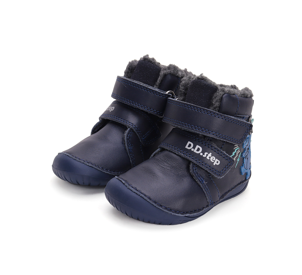Vyššie, kožené barefoot topánočky od značky D.D.Step s radou podrážky 070, ktorá je mäkká a flexibilná.Topánočky sú ohybné pozdĺžne aj priečne a špica poskytuje dostatok miesta pre prsty. Zapínajú sa na dva suché zipsy a majú nespevnenú pätovú oblasť. Sedia na normálne široké nôžky, znesú aj mierne vyšší priehlavok. Sú zateplené príjemnou, hrejivou kožušinou a vo vnútri sa nachádza zateplená, vyberateľná stielka bez vytvarovanej klenby. Výhodou je najmä praktická pogumovaná špica, ktorá zabráni okopaniu. Údržba a starostlivosť o topánočky je jednoduchá, stačí ich impregnovaťa šetrne čistiť.