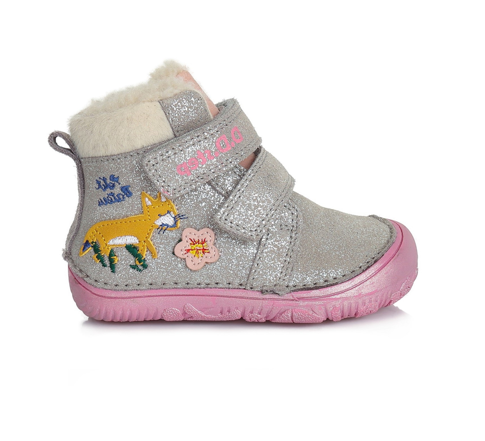 Celokožené barefoot topánky od značky D.D.Step s radou podrážky 073, ktorá je mäkká a flexibilná. Topánočky sú ohybné pozdĺžne aj priečne a špica poskytuje dostatok miesta pre prsty. V porovnaní s radou 063 sú v prednej časti širšie a sú vhodné aj pre dominantné palce. Sedia na normálne široké až širšie nôžky. Majú nespevnenú pätovú oblasť. Sú vhodné na nižší a normálne vysoký priehlavok. Vnútro majú zateplené príjemnou kožušinou. V topánkach sa nachádza vyberateľná, netvarovaná stielka, ktorá je tiež zateplená. Dajú sa pekne utiahnuť vďaka dvom suchým zipsom. Výhodou je najmä praktická, vyvýšená, pogumovaná špica, ktorá chráni topánočky pred okopaním, čím sa predlžuje ich životnosť. Starostlivosť a údržba topánok je jednoduchá, stačí ich impregnovať.