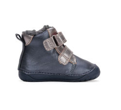 Vyššie, kožené barefoot topánočky od značky D.D.Step s radou podrážky 070, ktorá je mäkká a flexibilná.Topánočky sú ohybné pozdĺžne aj priečne a špica poskytuje dostatok miesta pre prsty. Zapínajú sa na dva suché zipsy a majú nespevnenú pätovú oblasť. Sedia na normálne široké nôžky, znesú aj mierne vyšší priehlavok. Sú zateplené príjemnou, hrejivou kožušinou a vo vnútri sa nachádza zateplená, vyberateľná stielka bez vytvarovanej klenby. Výhodou je najmä praktická pogumovaná špica, ktorá zabráni okopaniu. Údržba a starostlivosť o topánočky je jednoduchá, stačí ich impregnovať a šetrne čistiť.