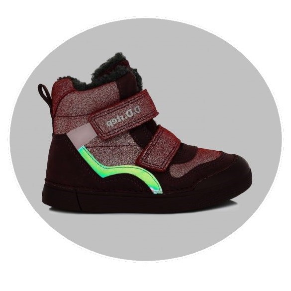 Celokožené, vyššie topánky od značky D.D.Step. Sedia na normálne široké aj širšie nôžky. Sú zateplené príjemnou, hrejivou kožušinou. Vo vnútri majú vyberateľnú, zateplenú stielku. Dajú sa pekne utiahnuť dvoma suchými zipsami. Topánočky sú mäkké a ohybné. Výhodou je najmä praktická pogumovaná špica, ktorá zabráni okopaniu, čím sa predlžuje ich životnosť. Starostlivosť a údržba topánok je jednoduchá, stačí ich pravidelne impregnovať a šetrne čistiť. Majú tiež reflexné prvky, vďaka čomu jasne vyniknú v tme.