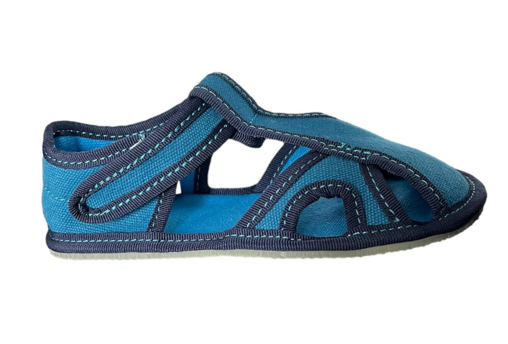 Polootvorené Barefoot papučky od značky EF sú veľmi ľahučké a ohybné pozdĺžne aj priečne. Zatvorená predná časť chráni nôžky pred zakopnutím a zároveň poskytuje dostatok priestoru pre prsty. Papučky sú po bokoch otvorené, čo umožňuje vetranie nožičiek. Majú tenkú, gumenú 2 mm podrážku s nulovým dropom. Sedia na normálne široké až užšie nôžky a vďaka suchému zipsu sa dajú pekne utiahnuť aj na úzke členky. Rovná, vnútorná stielka nie je vyberateľná.